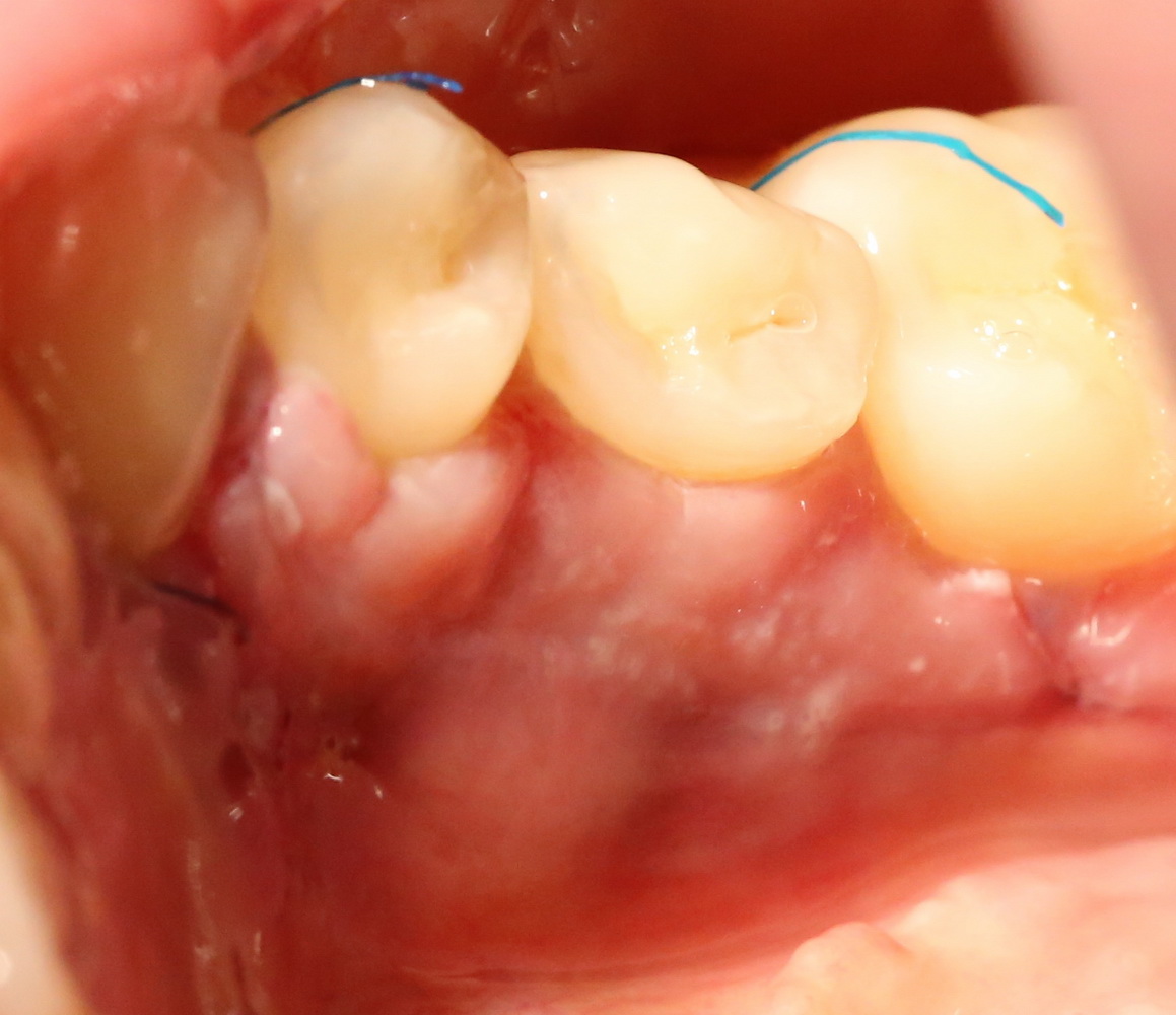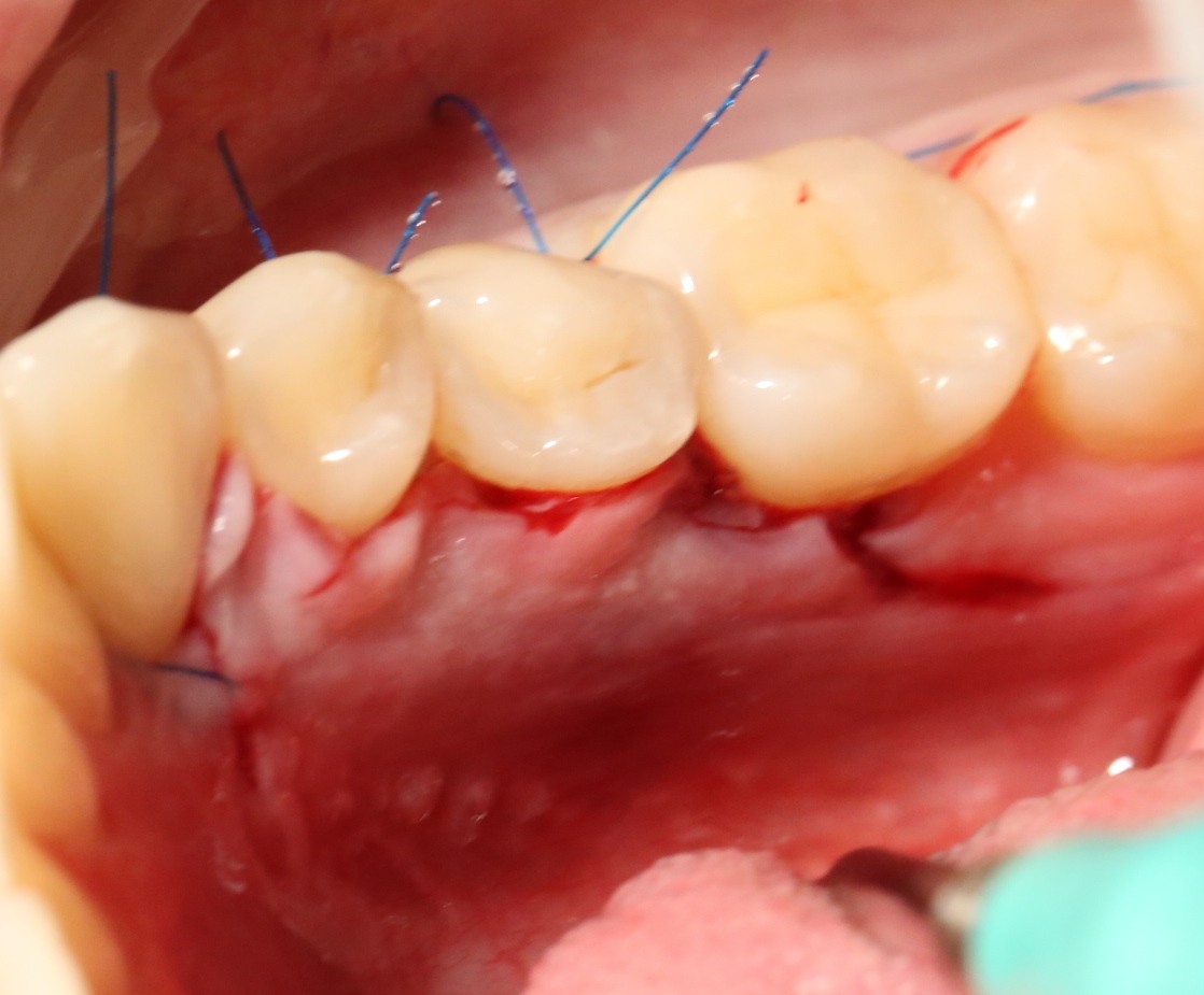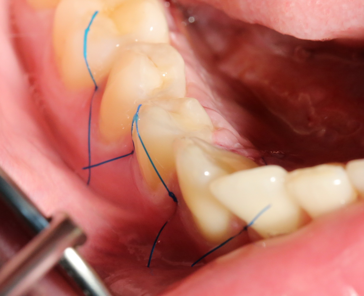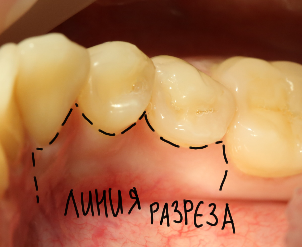 Благодаря сделанному нами разрезу, мы можем вывести узелки на внешнюю сторону альвеолярного отростка, что будет удобнее и комфортнее для пациента: