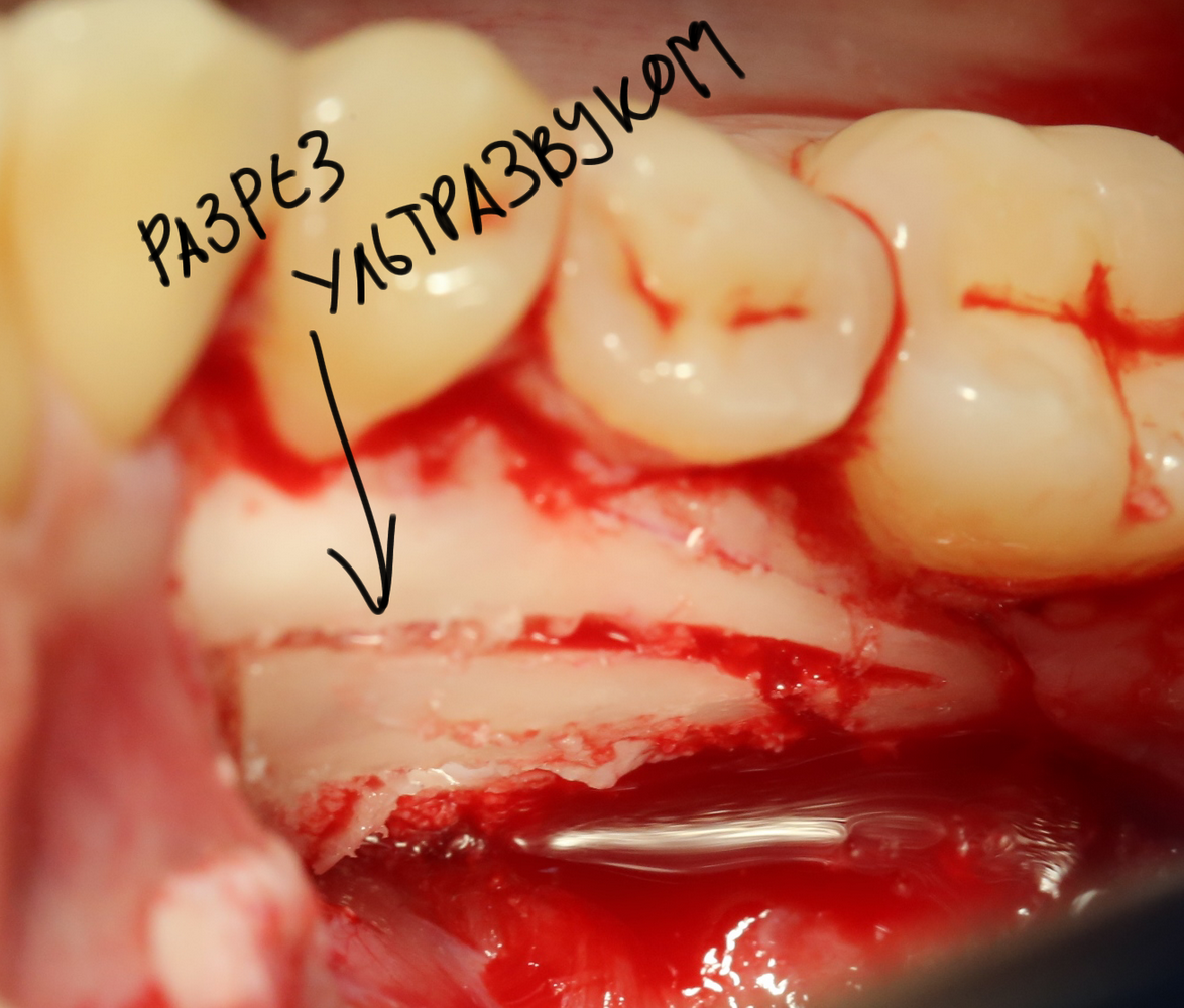 - костнопластическая трепанация кортикальной пластинки альвеолярного отростка с помощью ультразвука.