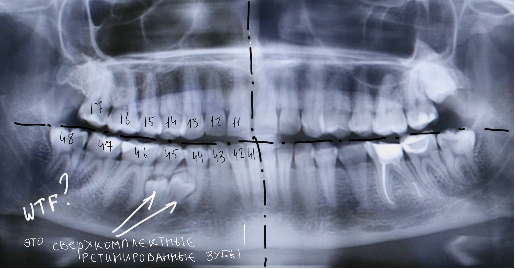 Что мы на нем видим? Ну да, есть два лишних зуба.