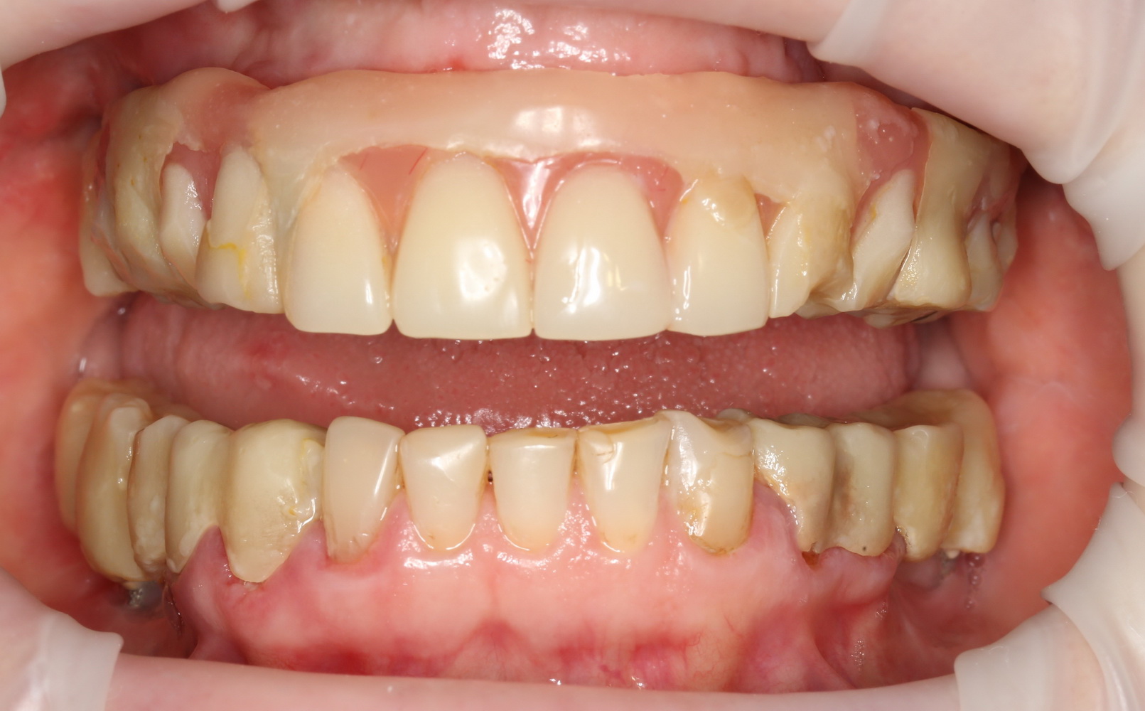 Чрезмерный объем искусственной десны создает серьезные сложности для гигиены и ухода за имплантами, не говоря уже о качестве жизни. Как следствие, возникает перманентное воспаление, которое существенно уменьшает срок службы имплантов.