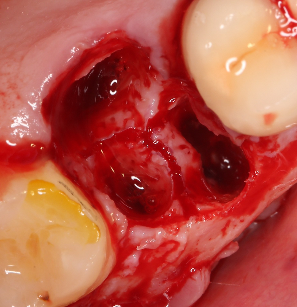 После удаления корней зубов нужно резецировать и сгладить все острые края лунок, которые могут прорезаться в процессе заживления. И конечно же убрать все подвижные фрагменты кости, если таковые имеются.