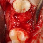 — много лет мы используем антибиотики для интраоперационной профилактики инфекционно-воспалительных осложнений. Уже в то время мы пришли к выводу, что удобнее всего — порошки антибактериальных препаратов для приготовления раствором: дешевые, стерильные, в удобной упаковке. Прямо в виде порошка их можно добавлять в графт, растворы для ирригации, либо использовать так, как показано на фото. Еще мы используем порошок антибиотика для изготовления пасты, которой обрабатываем имплантаты в процессе ревизии или при лечении периимплантита. Это удобнее и эффективнее, чем интраоперационное использование жидких форм антибактериальных препаратов.
