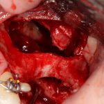 Остается одна методика, а именно — аутотрансплантация крупных костных фрагментов. Как и в случае с НКР, у нас есть и условия, и оптимальная клиническая ситуация. В частности, мы можем провести операцию по принципу «одной раны», что это очень важно. К тому же, АТККФ получается дешевле, позволяет улучшить стабилизацию имплантатов и, в целом, получается более предсказуемой и удобной конкретно в этом клиническом случае (с точки зрения «одной раны» и способов фиксации графта).