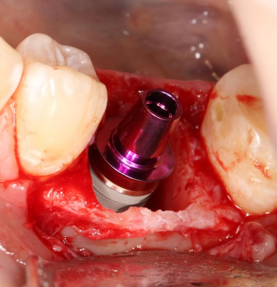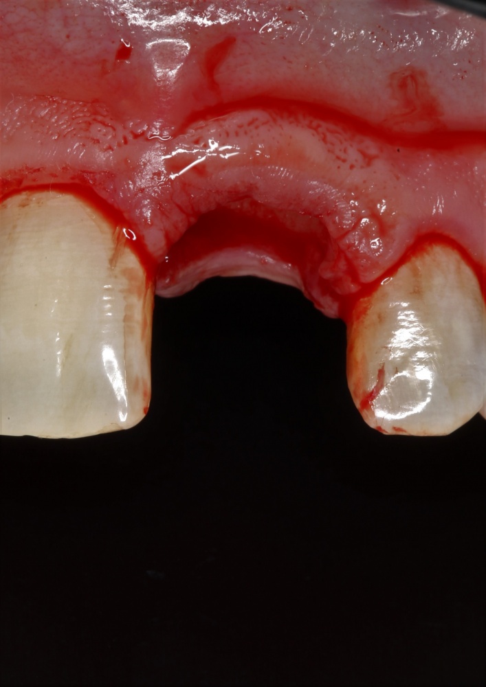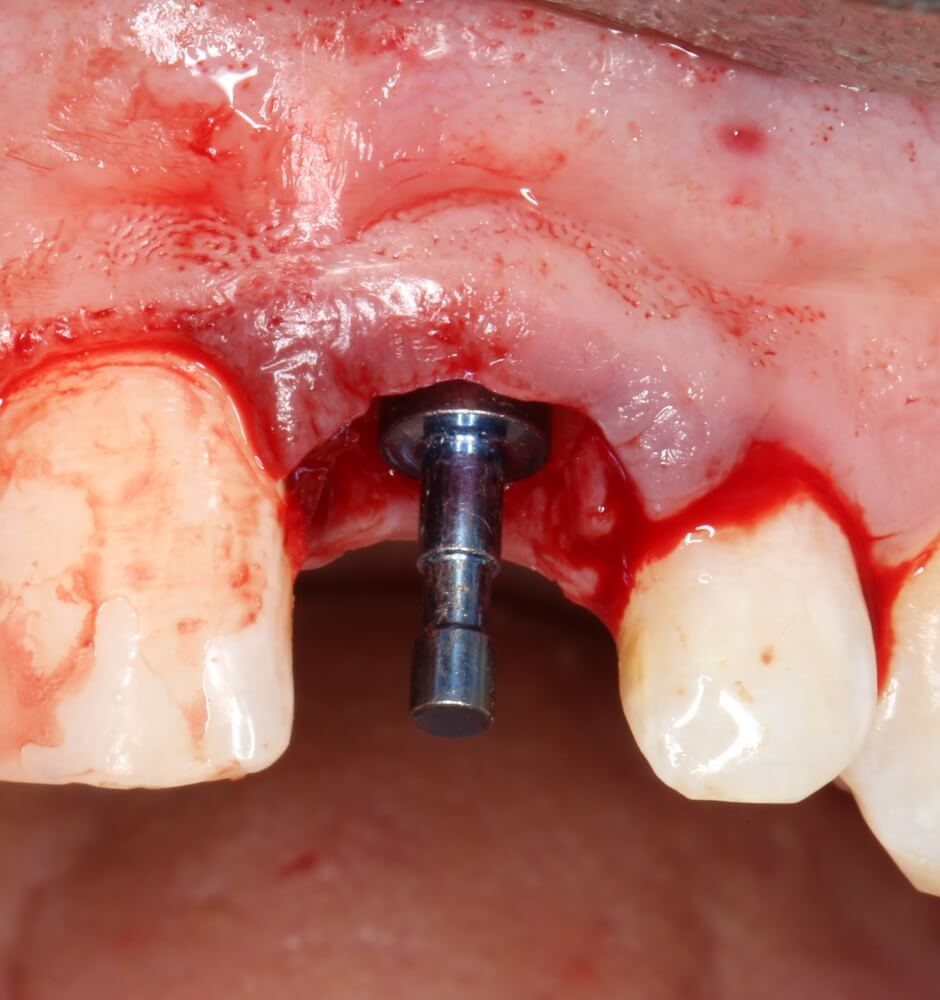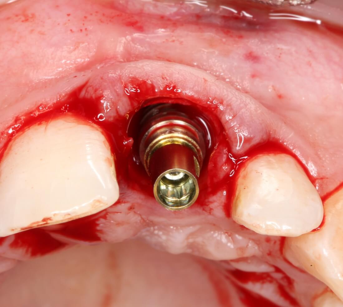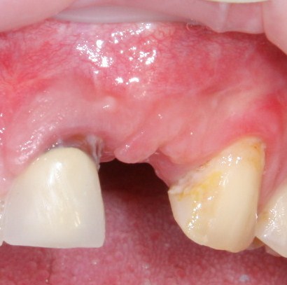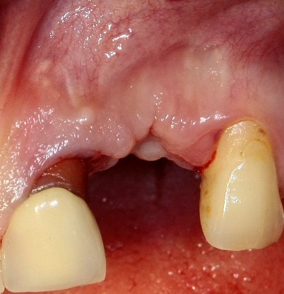 2. Дефицит слизистой оболочки почти всегда сопровождает атрофию кости. Следовательно, после имплантации (либо до нее) нам потребуется пластика десны. Я предпочитаю это делать на этапе установки формирователей десны.