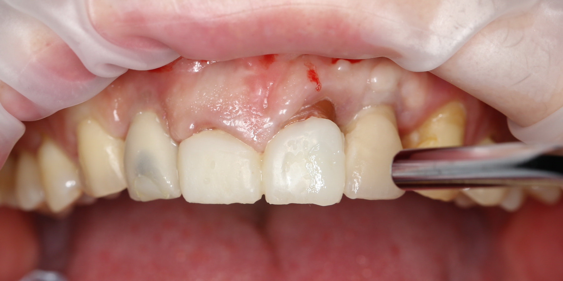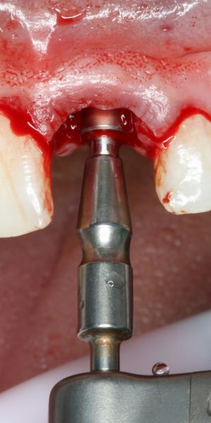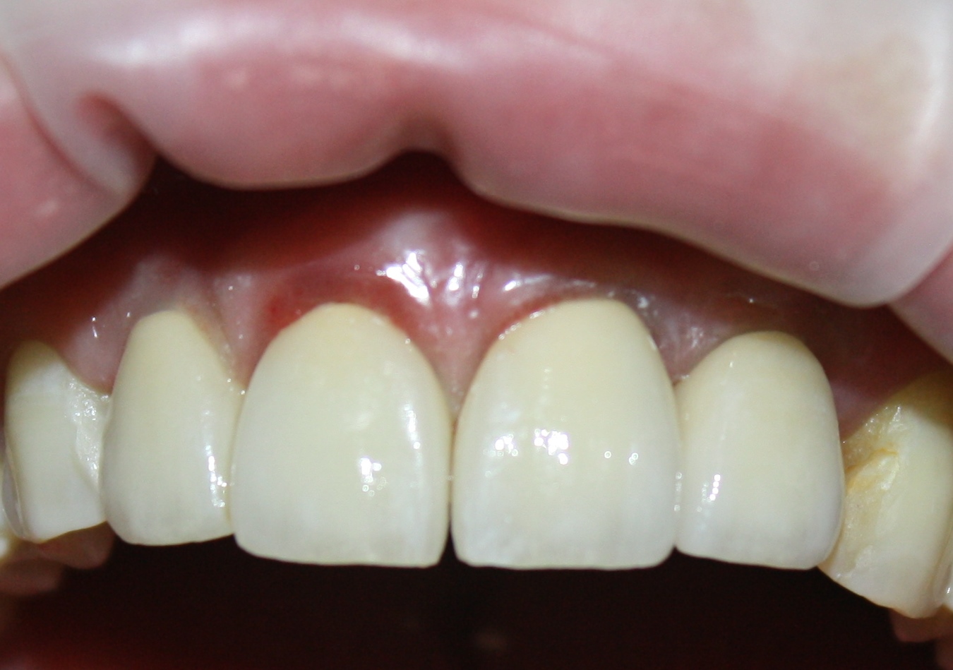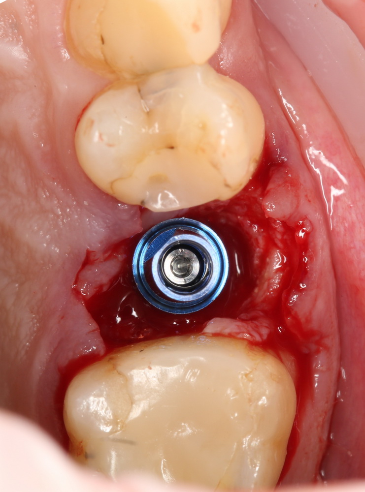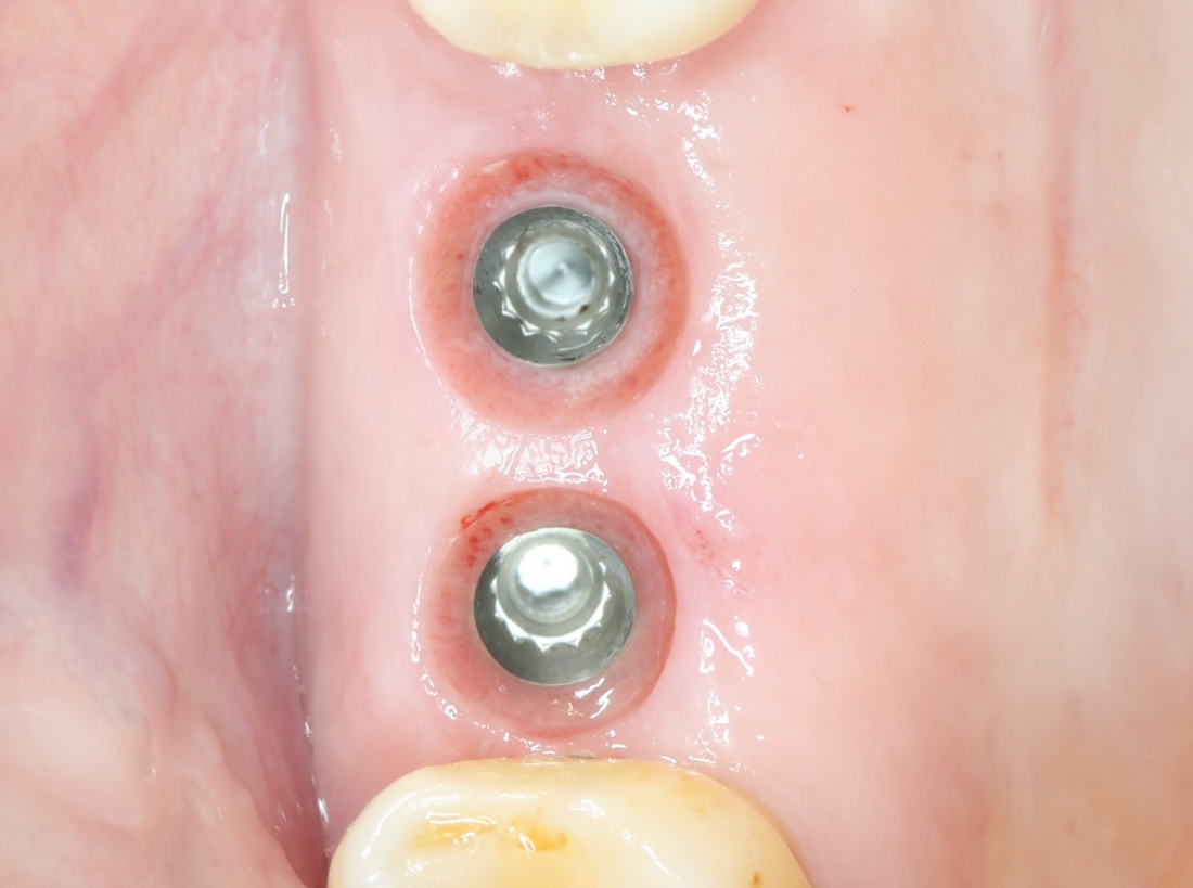 Мы не считаем это проблемой. Это нормально, такие имплантаты имеют ряд преимуществ перед привычными субгингивальными, особенно для опоры больших протетических конструкций.