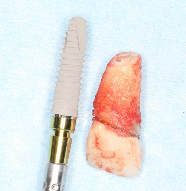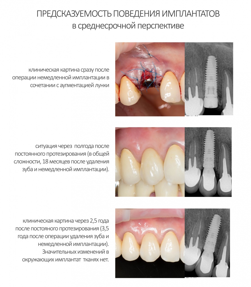 Каждый доктор думает в меру своего опыта и компетенции. Если бы вы пришли ко мне шесть лет назад с просьбой провести немедленную имплантацию, скорее всего, мое решение было бы отрицательным. Я бы сказал, что это слишком рискованно и невозможно в принципе. Сейчас, когда доля немедленной имплантации в практике нашей клиники составляет почти половину всего объема имплантологического лечения, я смело могу утверждать, что немедленная имплантация (т. е. установка импланта в лунку сразу после удаления зуба) не просто возможна, но и очень даже желательна, несет в себе намного меньше рисков и проблем. Более того, могу заметить, что результаты, которые мы получаем при немедленной имплантации, намного лучше, чем при имплантации отсроченной.