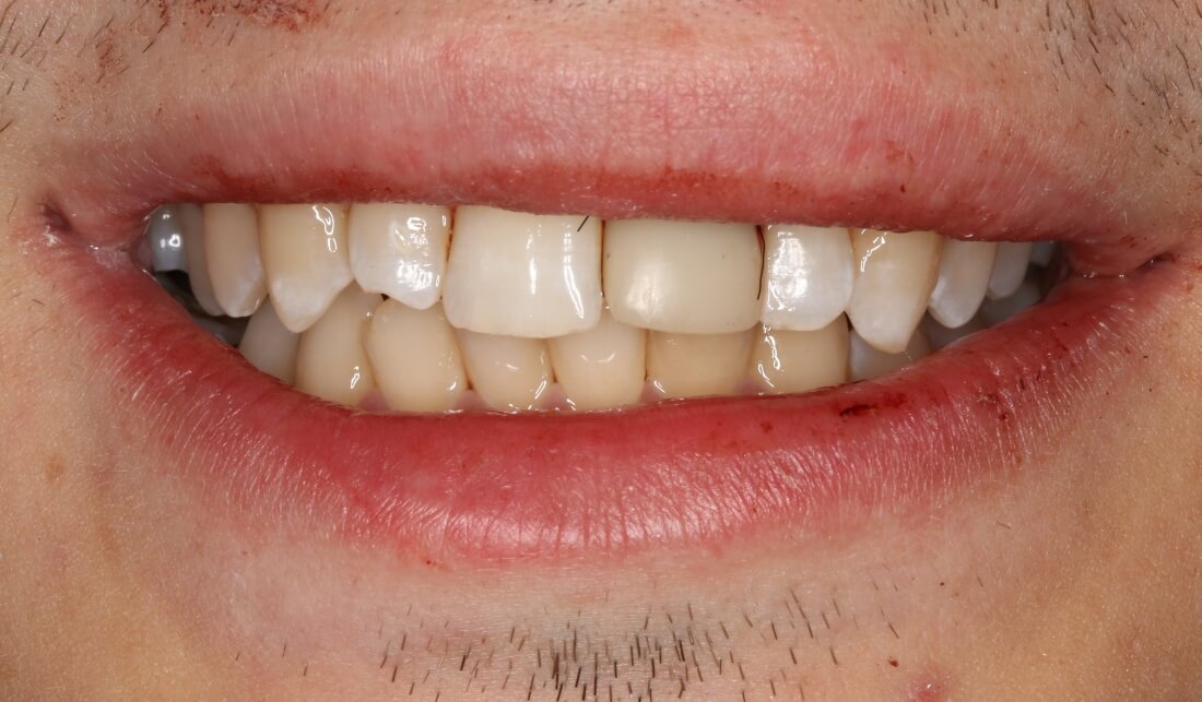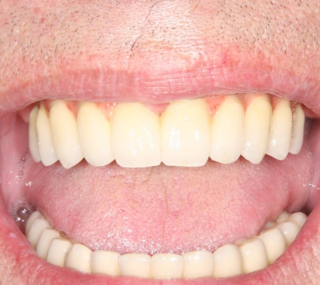 И вот ситуация конечная, уже с имплантами. С начала лечения прошло три месяца.