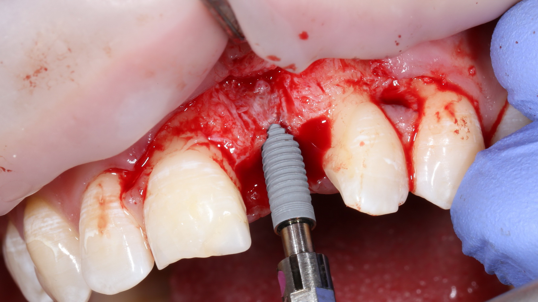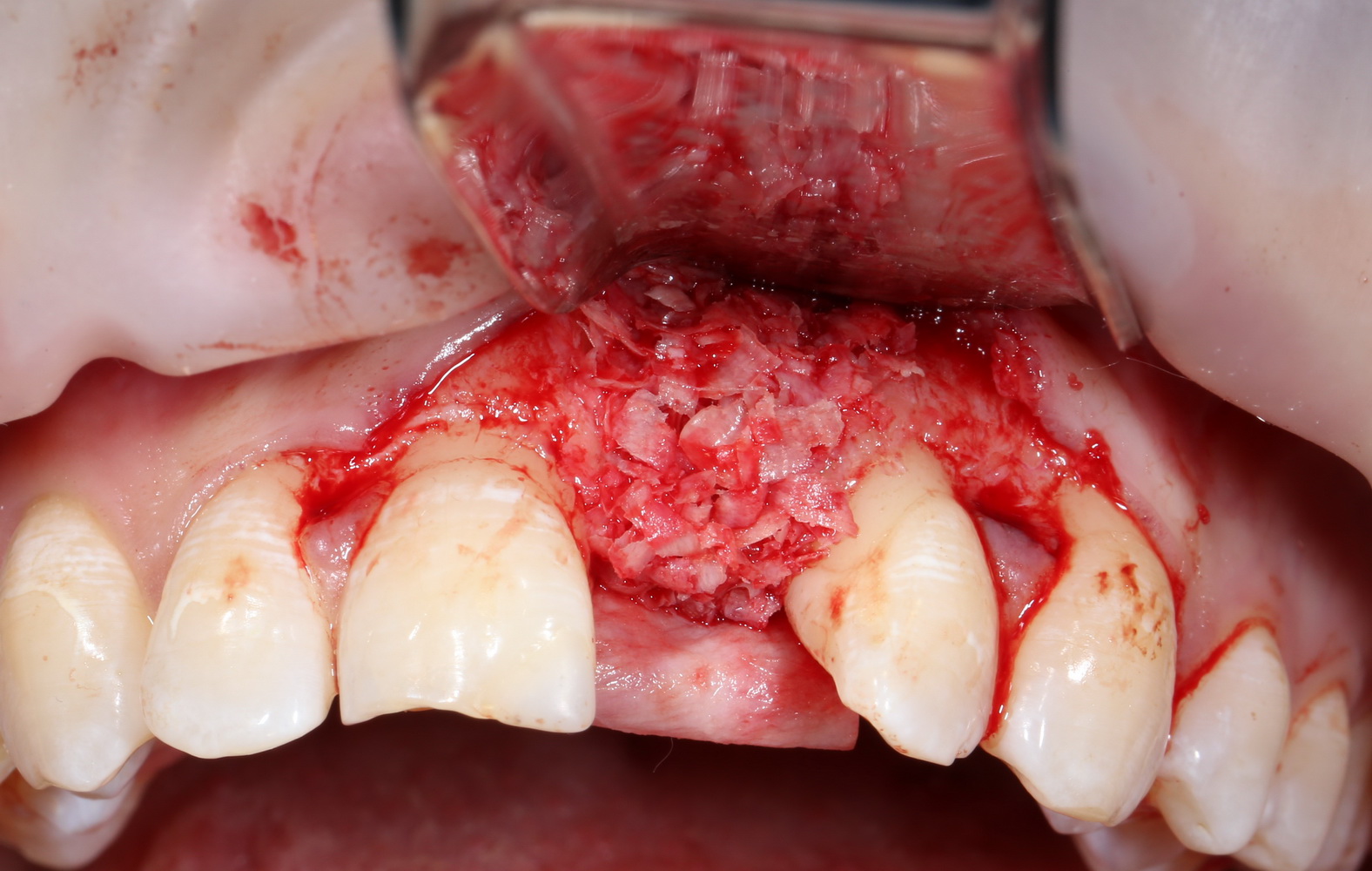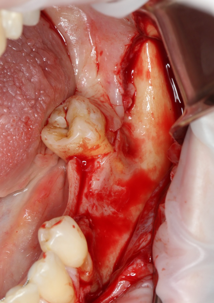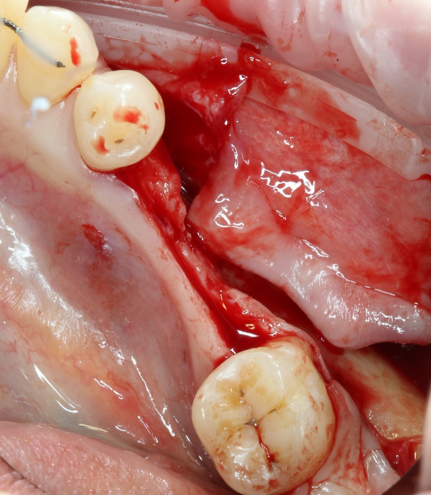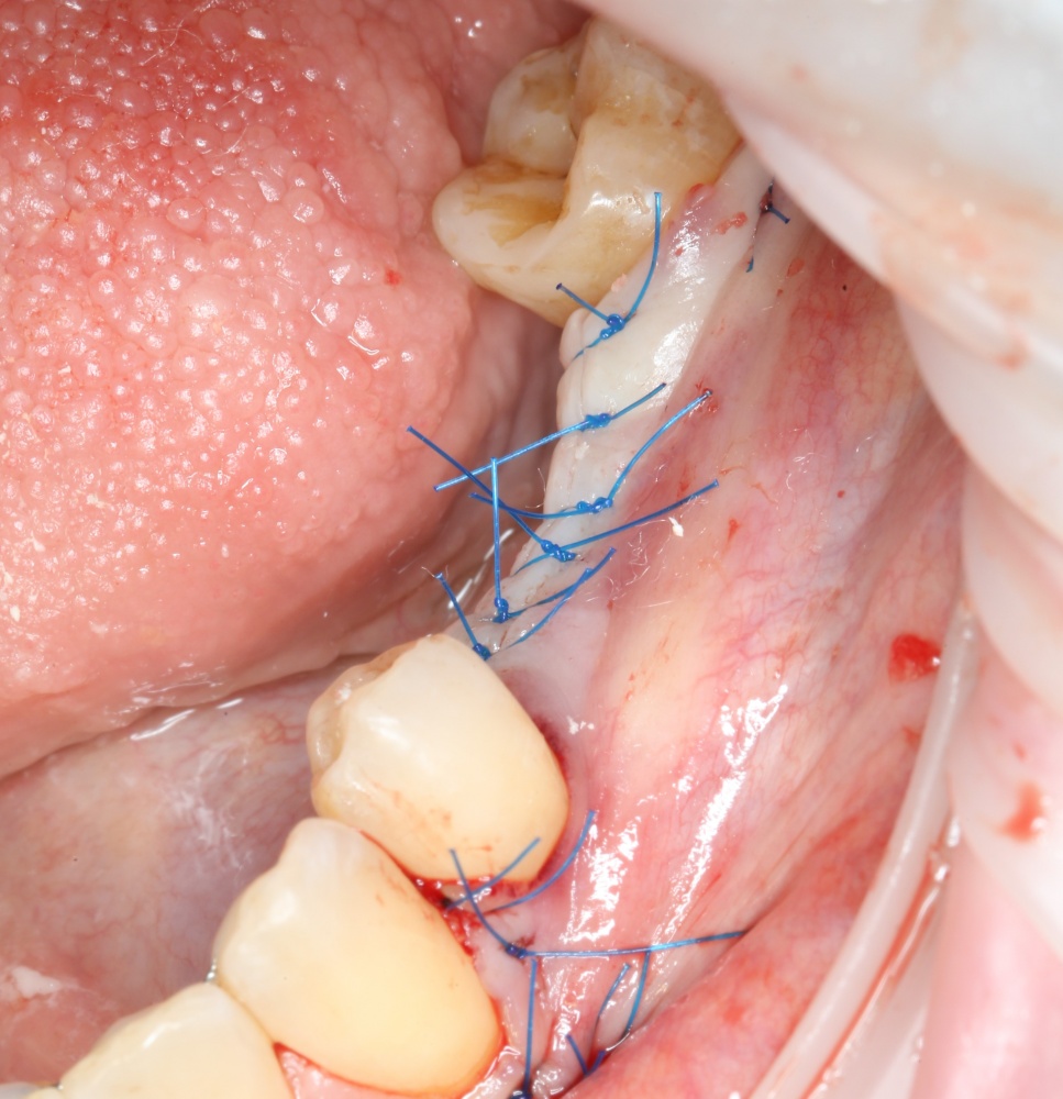 Не нужно скелетировать весь альвеолярный гребень целиком. Мы делаем это только в тех участках, которые необходимы для работы в настоящий момент. Потом, при необходимости, можно будет расшириться.