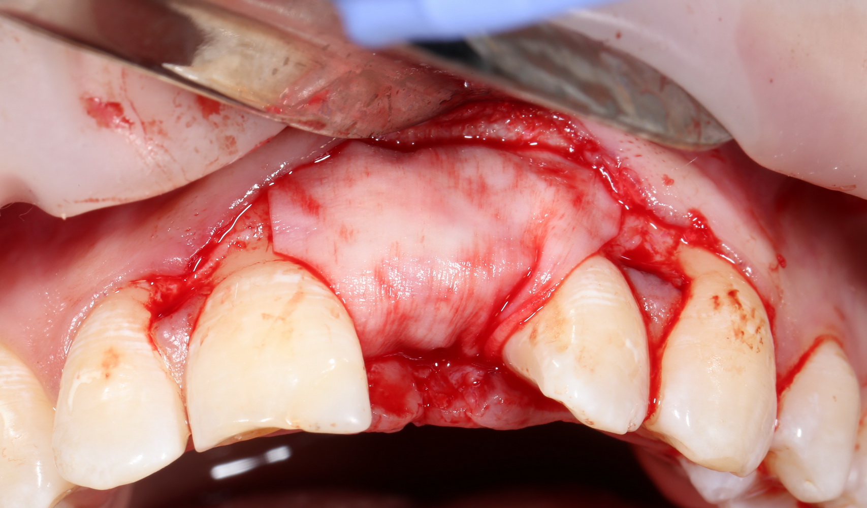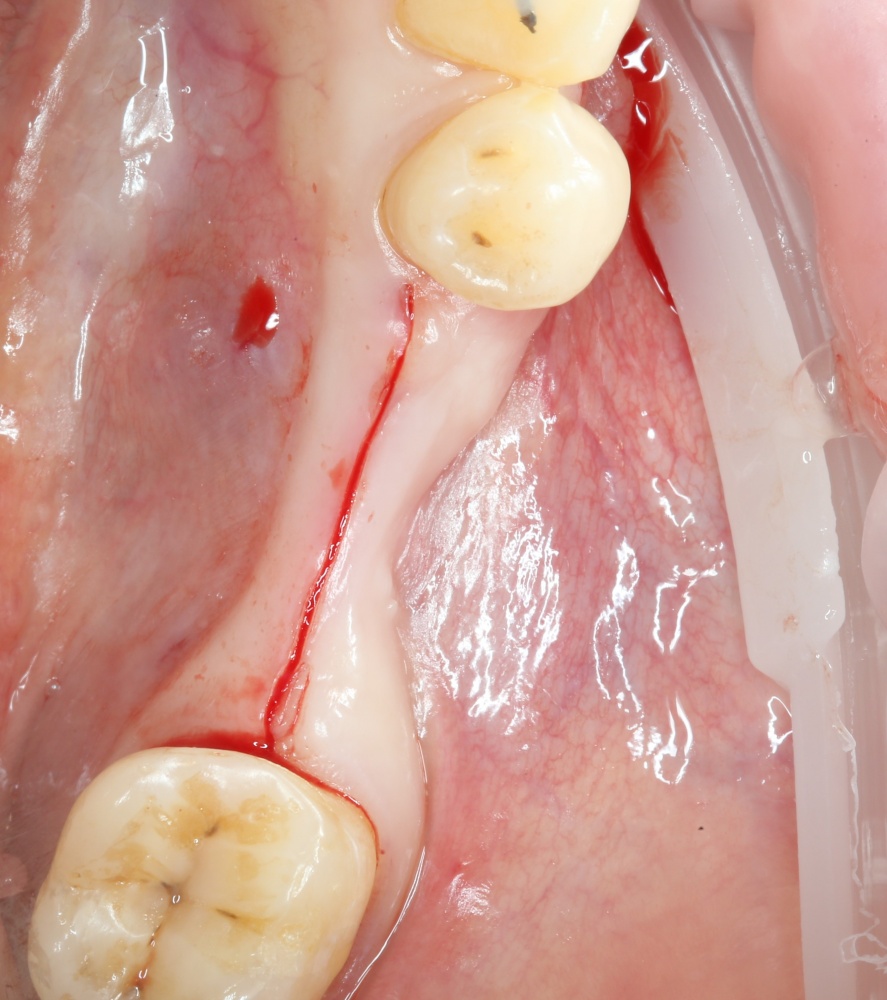 Операция начинается с разреза. Напомню, что разрез делается в пределах прикрепленной десны, это важно для последующего соблюдения Фактора успеха III:
