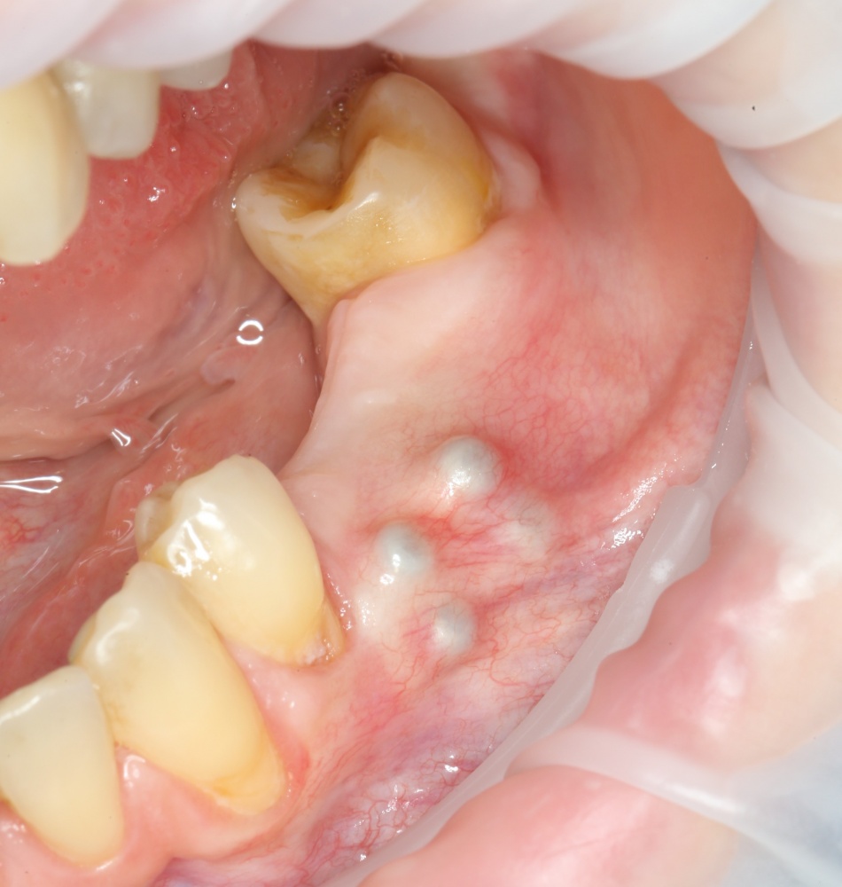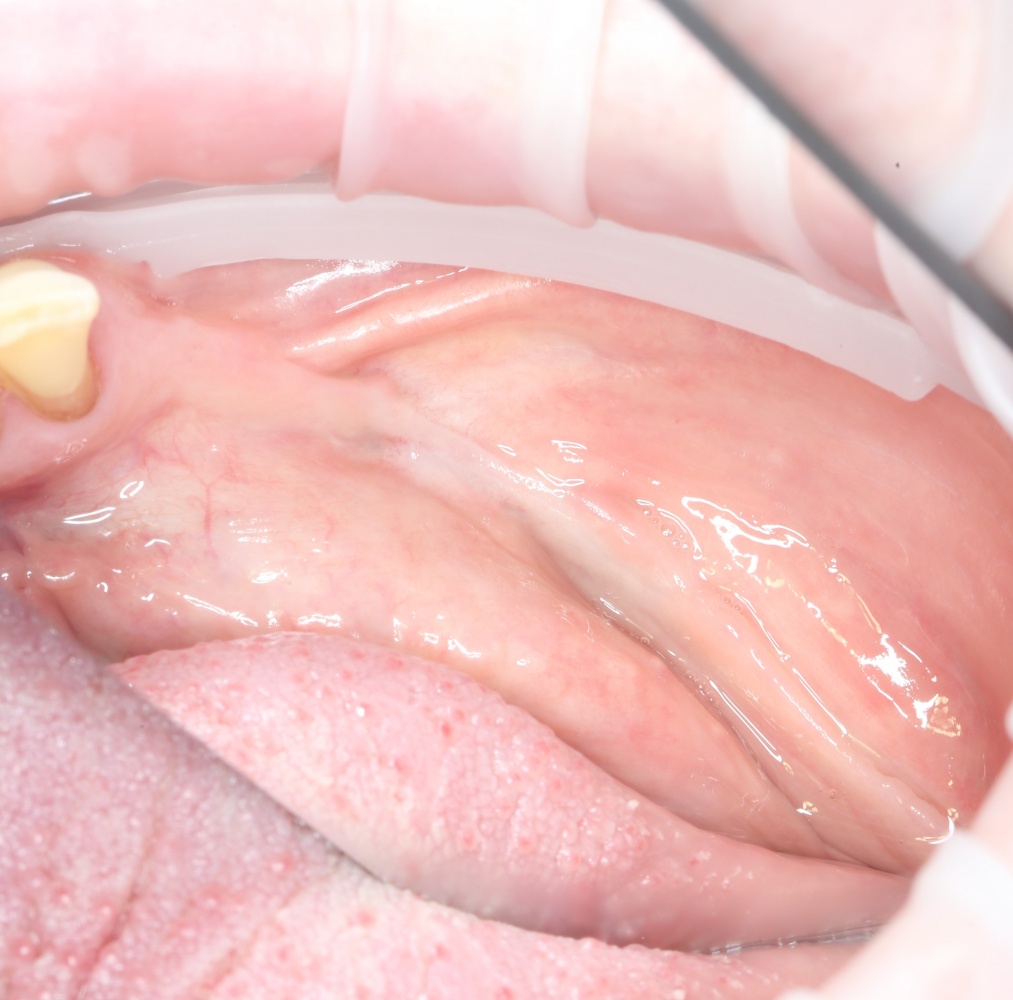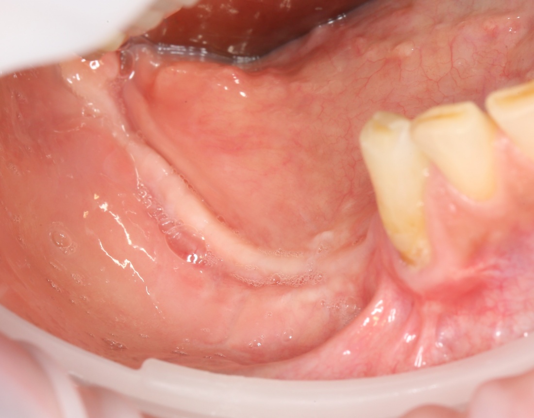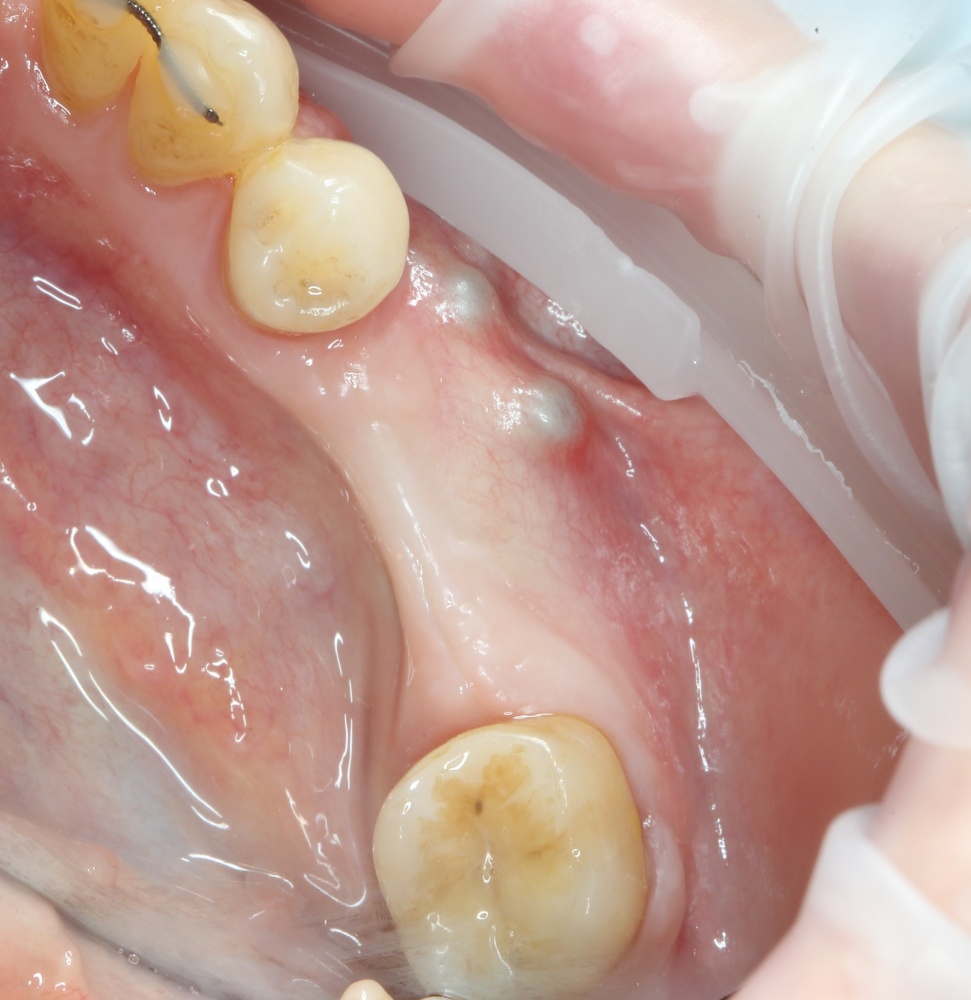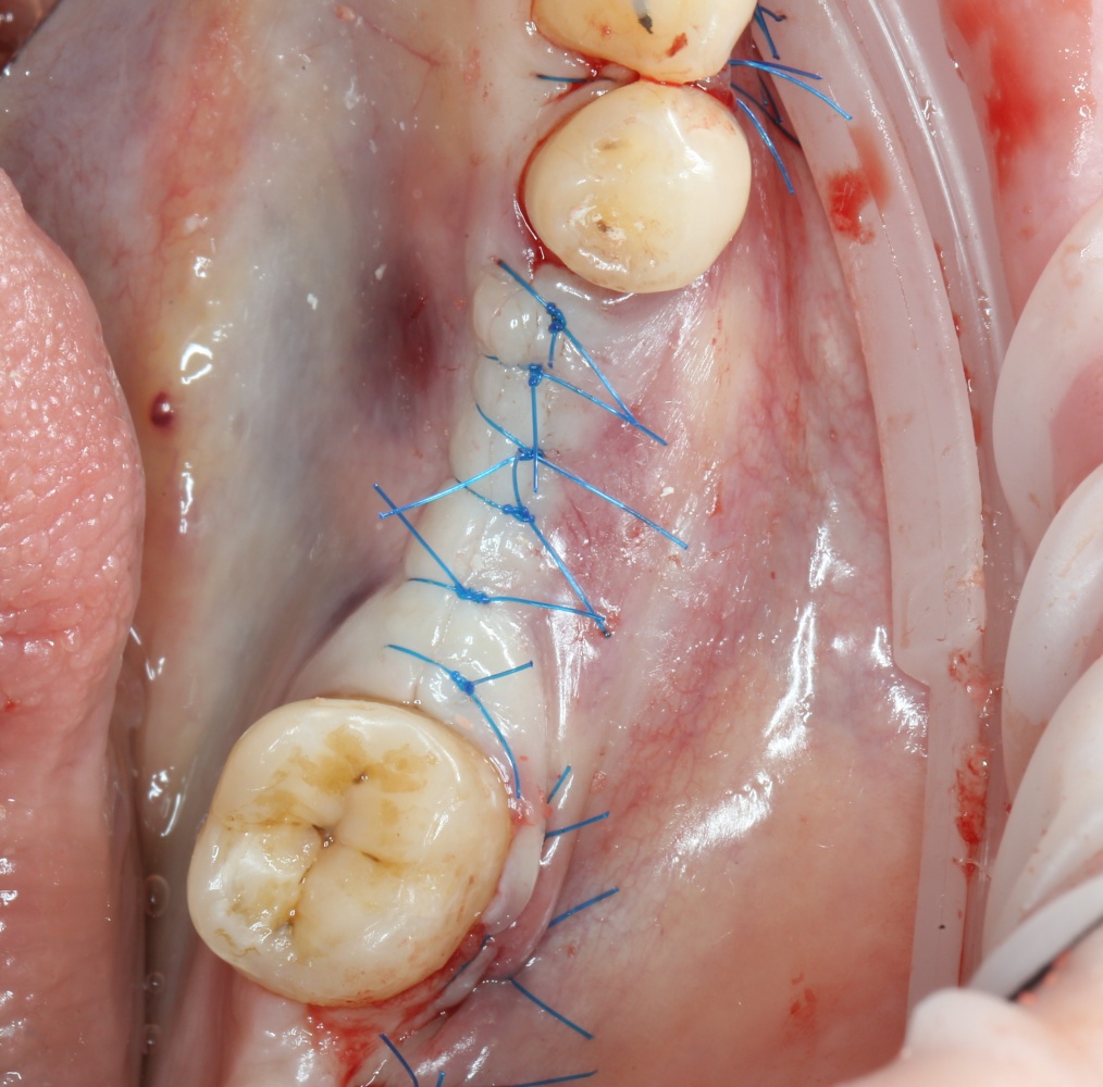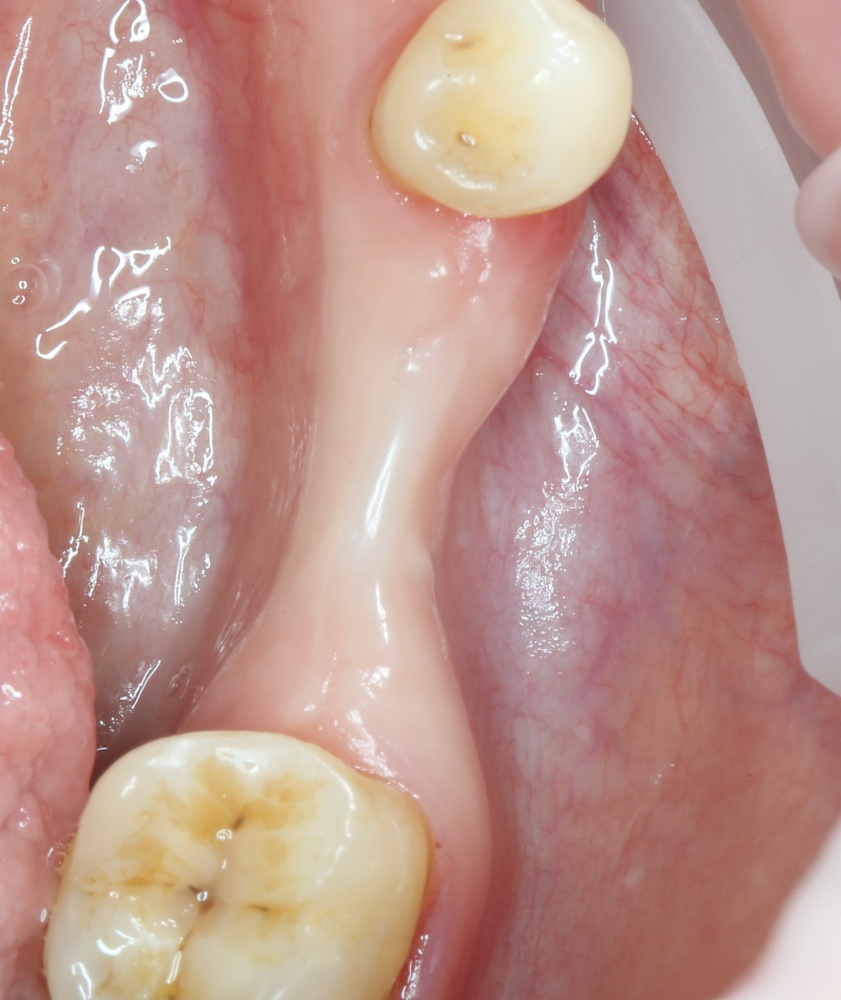 Конечно, было бы легче сделать разрез по подвижной слизистой оболочке, но в последующем такой шов легко расходится и создать полную герметичность будет сложно.