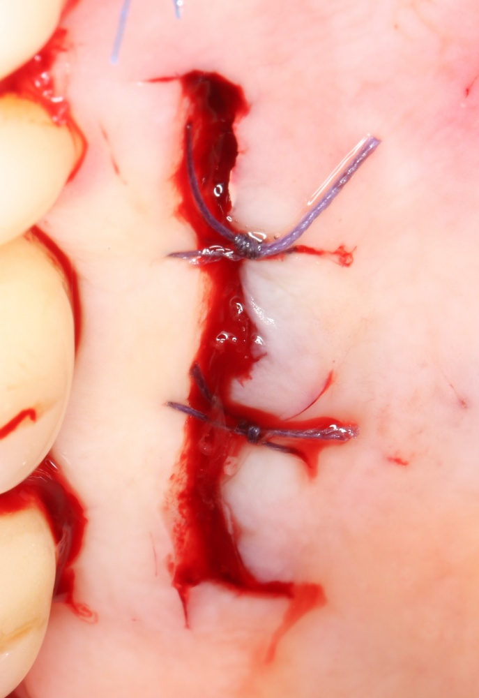 7. Обычно операция немедленной имплантации заканчивается наложением швов. Для этого используется нерезорбируемый монофиламентный шовный материал, а это значит, что швы нужно снять через 3-10 дней.
