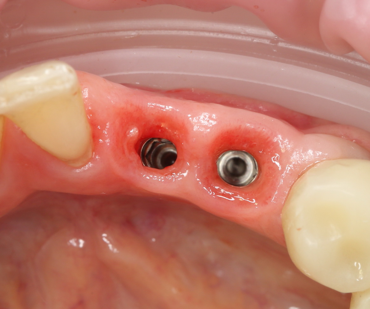 Вокруг установленного имплантата со временем формируются структуры тканей, схожие с теми, что окружают естественные зубы (например, слизистотканная муфта, окружающая основание абатмента, является «почти» аналогом круговой связки зуба).