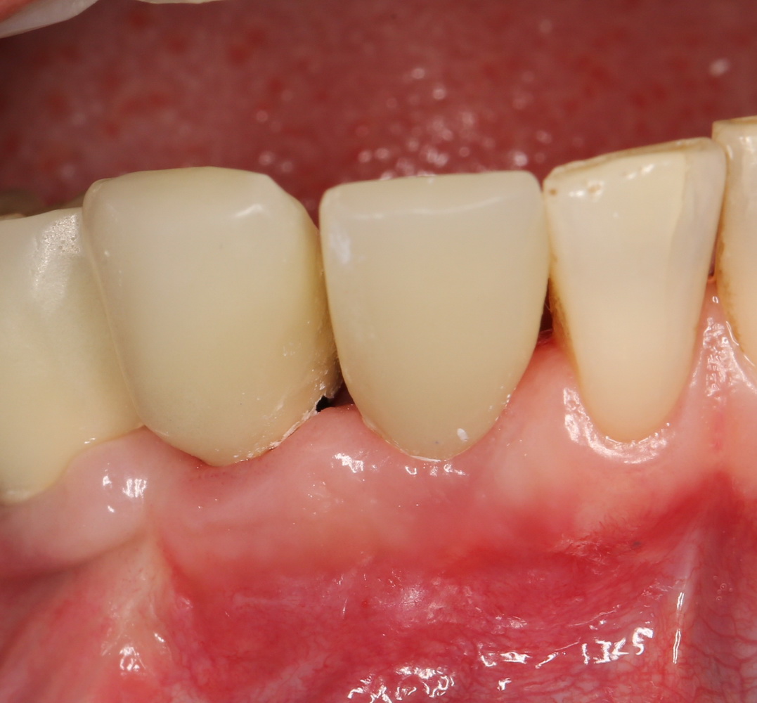 Как видно на фотографиях, эстетика десны в области искусственного бокового резца только улучшилась — межзубные сосочки и прикрепленная слизистая оболочка приобрели правильную форму и цвет, а сам зуб, практически, неотличим от естественного. Осталось только уговорить пациентку продолжить работу с клыком и центральными резцами, которые, несомненно, требуют такой же качественной реставрации.