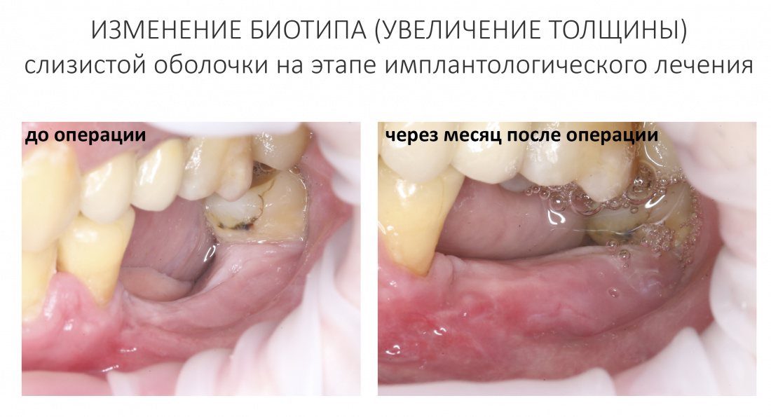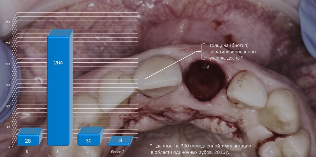 Первое является более-менее стандартным, относится к конструктиву имплантационной системы и является одним из факторов её выбора для решения клинических задач, что уже обсуждалось неоднократно. Второе — это индивидуальная особенность пациента и конкретной клинической ситуации, никак не зависящая от нас и выбранной нами тактики лечения. Для достижения наилучших и долгосрочных результатов имплантологического лечения, мы должны уделять внимание как первому, так и второму. Так формируется ключевая клиническая задача — изменение биотипа слизистой оболочки в ходе хирургического этапа стоматологической реабилитации.