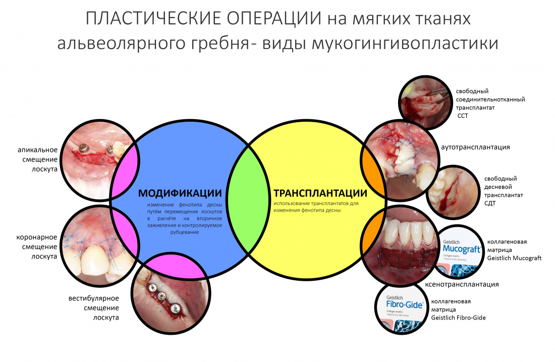 Об этом мы тоже говорили. Все существующие варианты пластических операций на десне мы можем свести к двум большим группам: