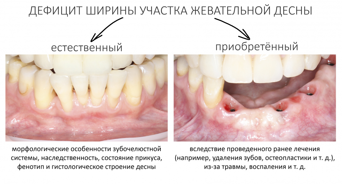 Десна (жевательная слизистая оболочка) имеет два важных, с клинической точки зрения, параметра: ширину участка и толщину.