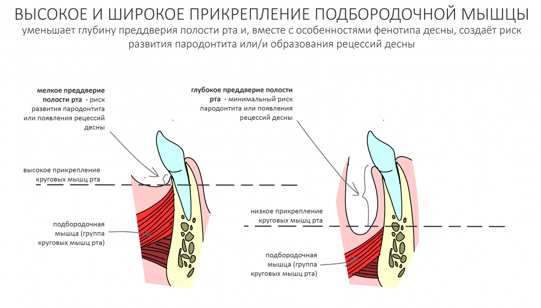 В совокупности, они образуют т. н. «биотип», совокупность оцениваемых визуально морфологических характеристик слизистой оболочки. Мы можем выделить несколько биотипов, но чаще просто говорим о «толстой» или «тонкой» десне.