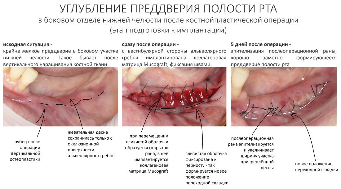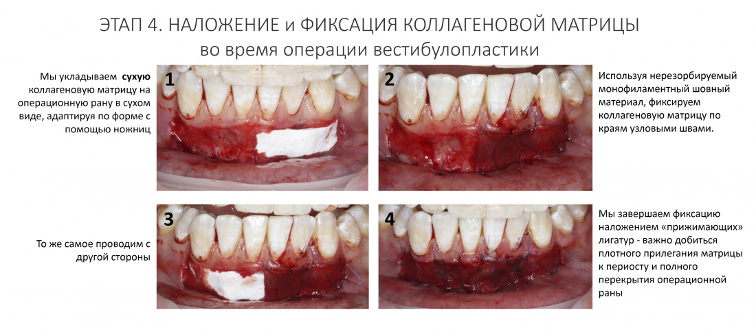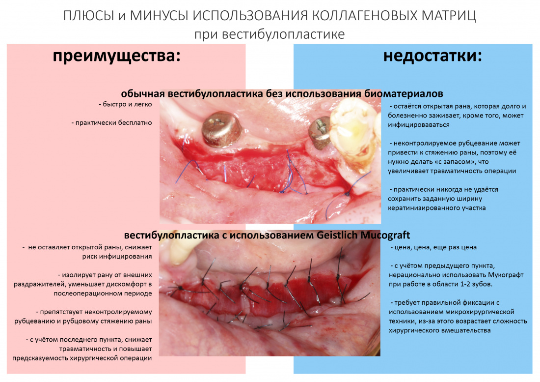 Коллагеновая матрица Geistlich Mucograft — почему, как, зачем и каким образом? Часть II. — хирургическая тактика использования коллагеновых матриц на примере операции вестибулопластики, показания и противопоказания.