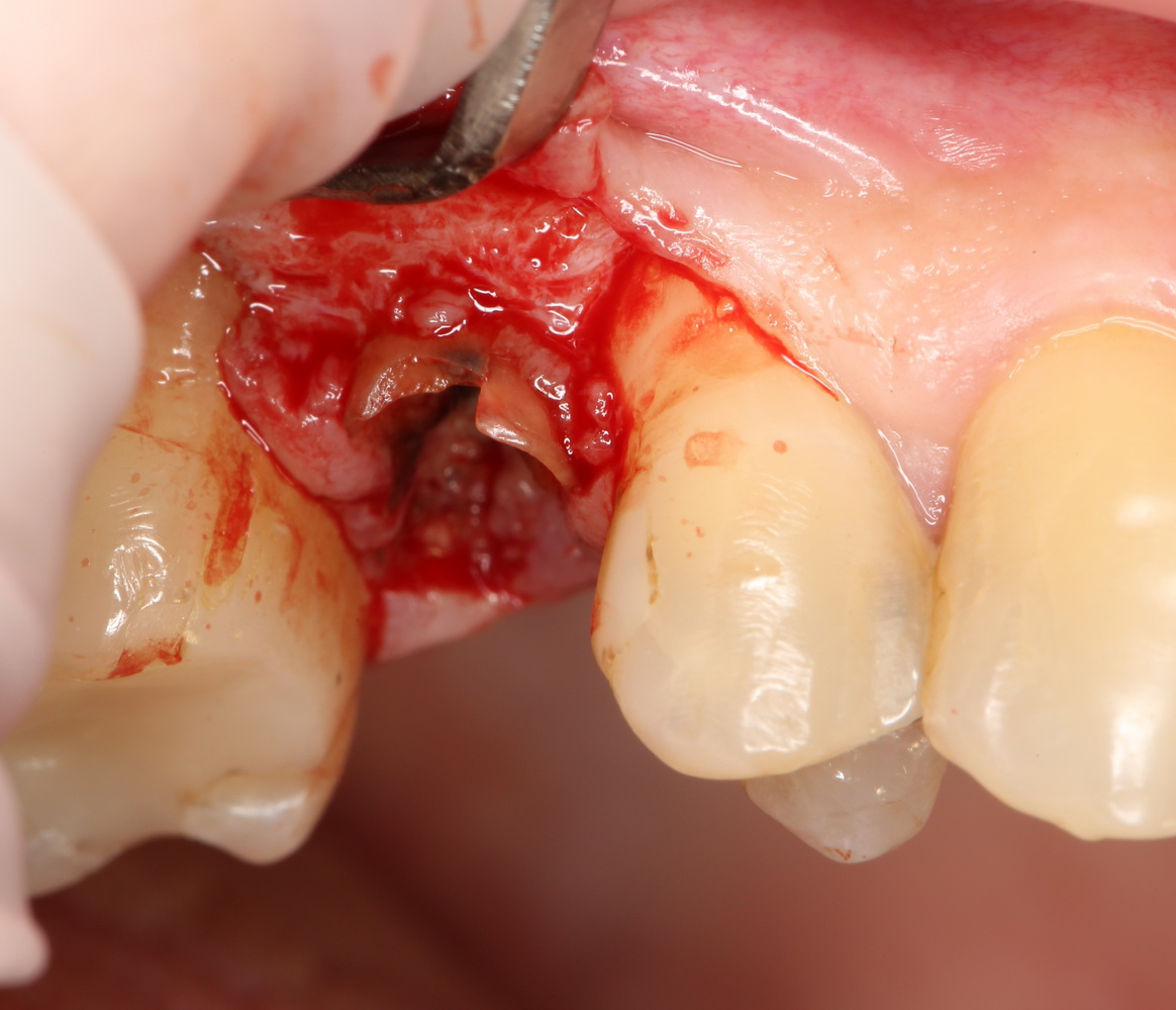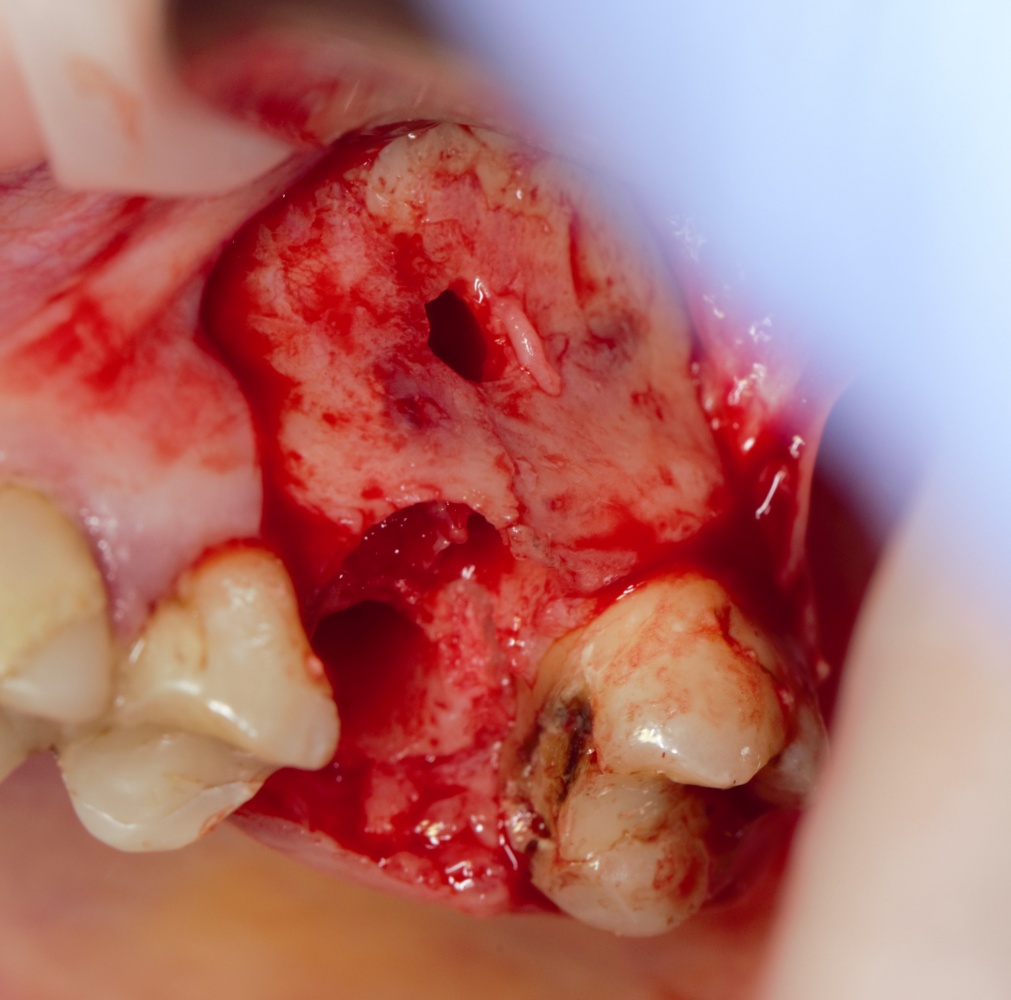 Наперво, мне нужно удалить разрушенный зуб и получить костный аутотрансплантат.