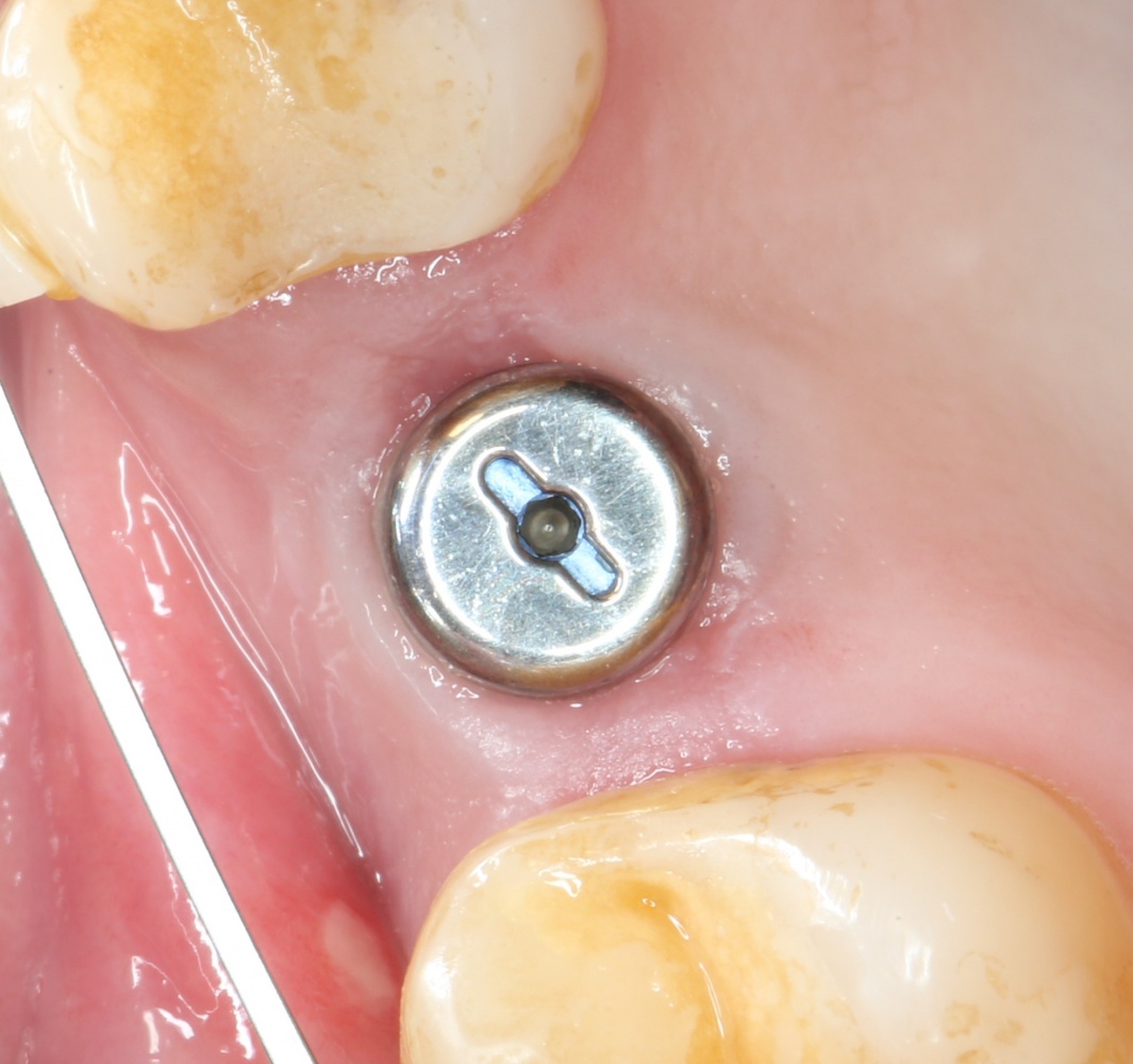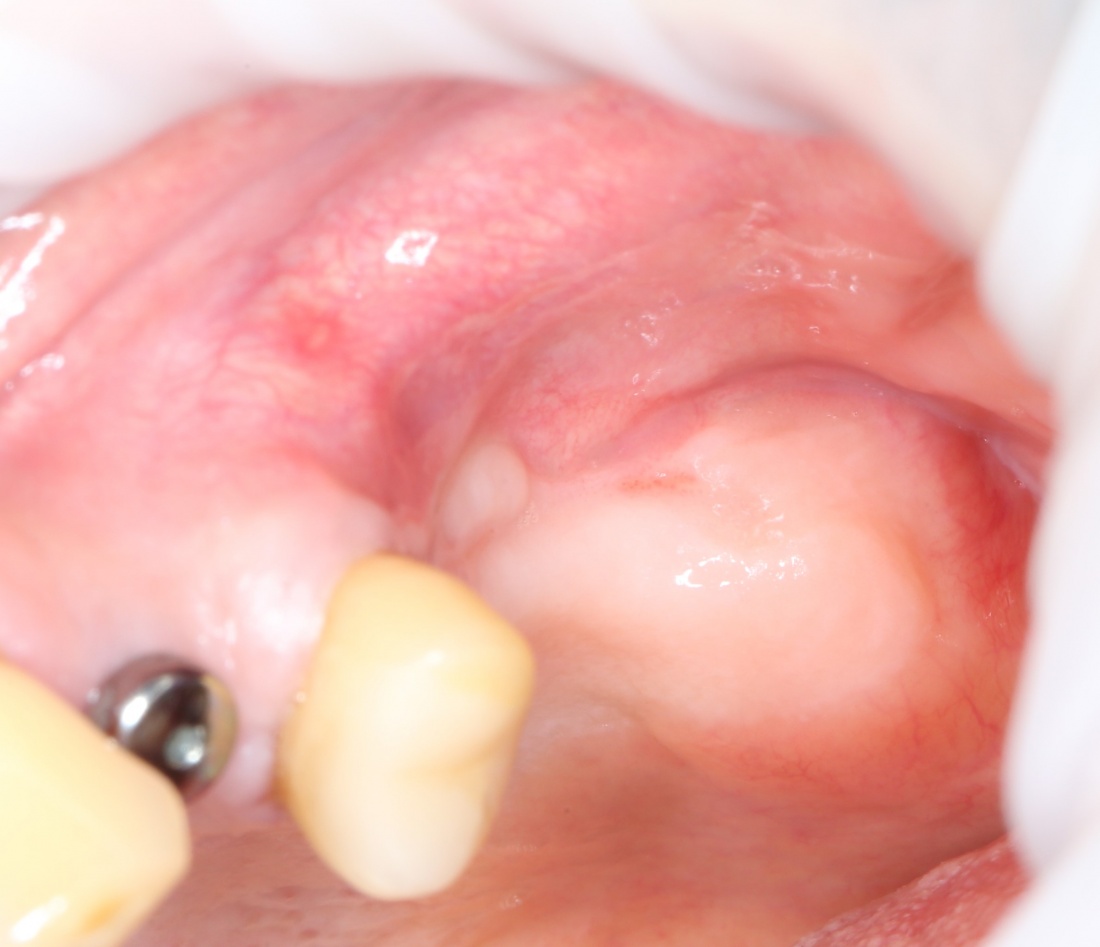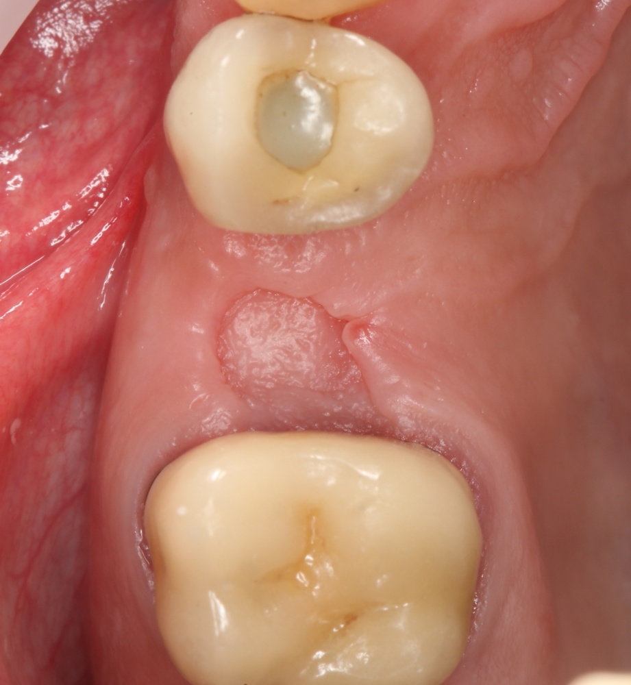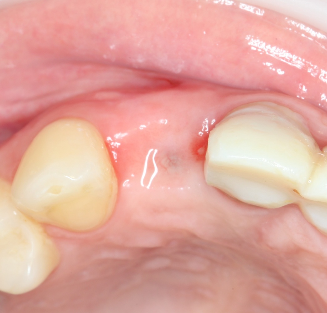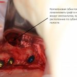Вот клиническая картина через 4 месяца после ранее проведенной имплантации с остеопластикой: