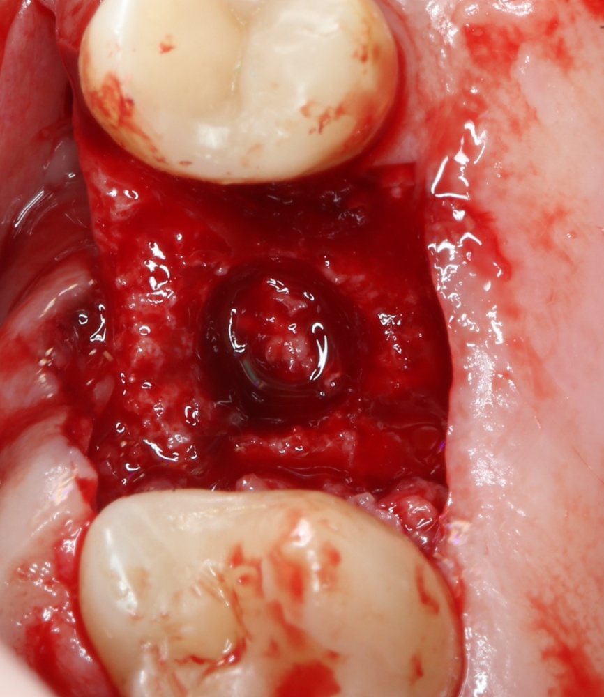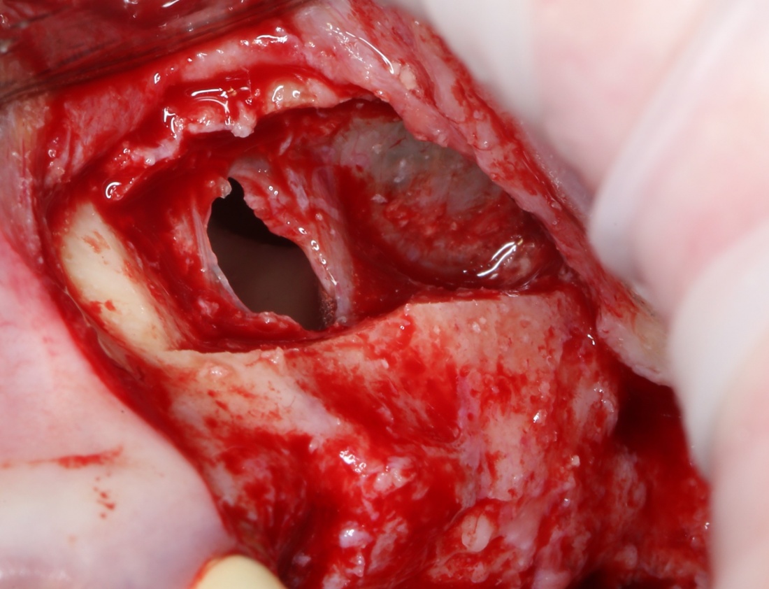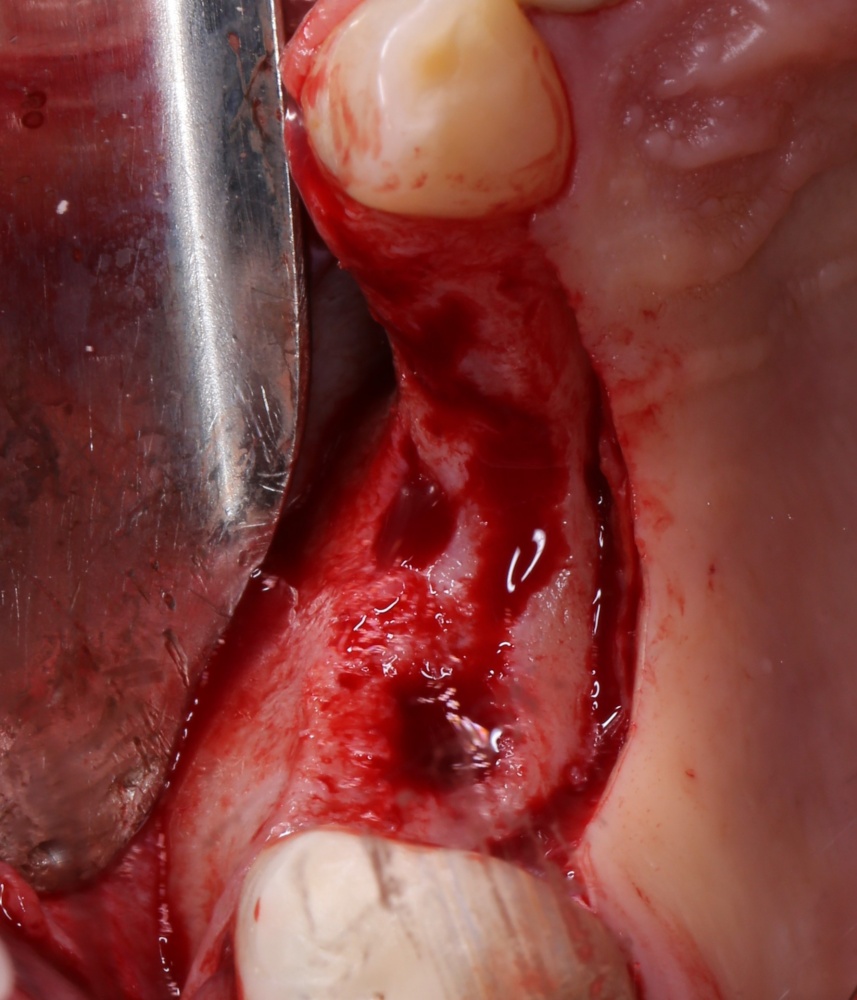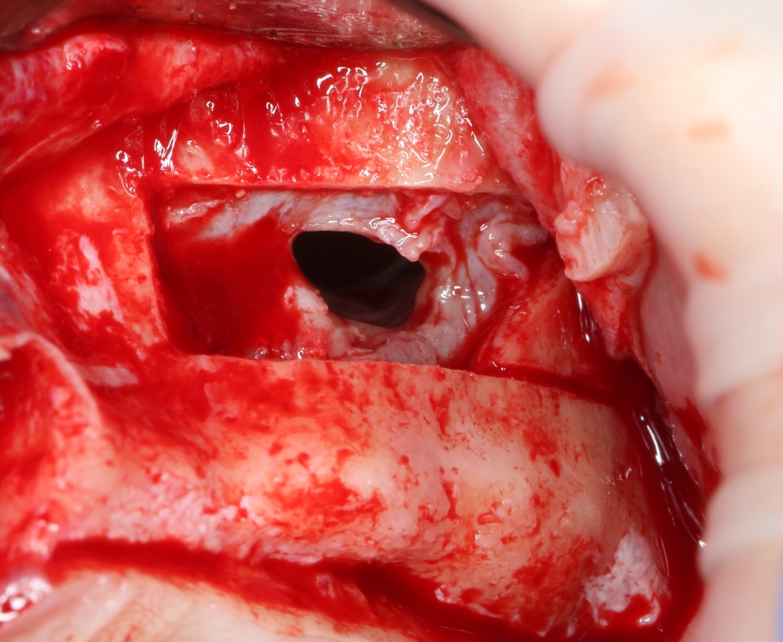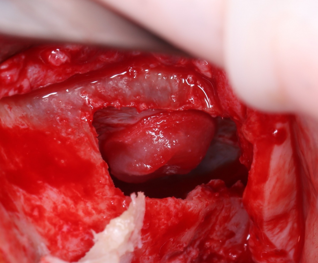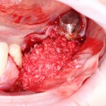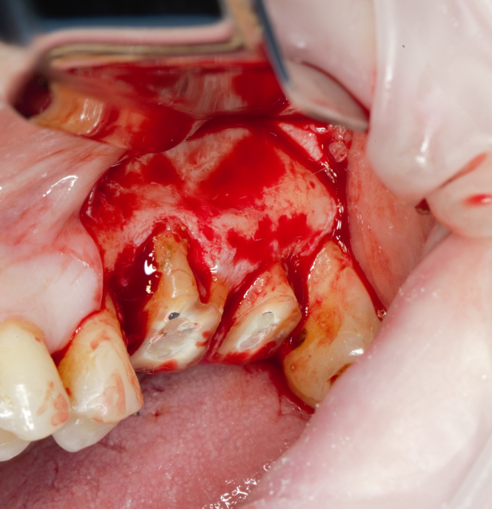 Конкретно в этом клиническом случае между костным аутотрансплантатом, ложем и имплантатами есть пустое пространство. Если его не изолировать от мягких тканей, они прорастут и осложнят интеграцию аутографта. Поэтому я решил перекрыть костный блок барьерной мембраной, пусть это делает хирургическую операцию немного дороже.