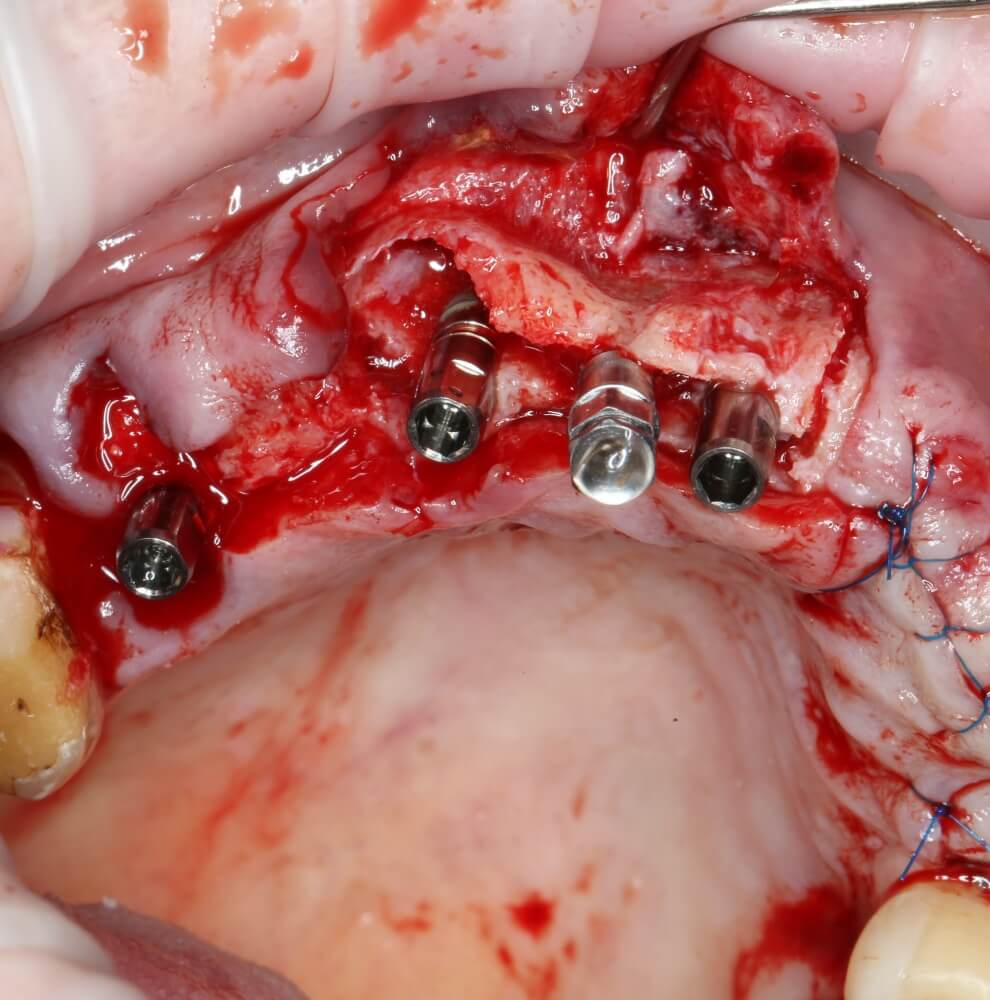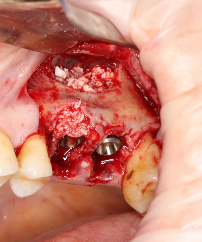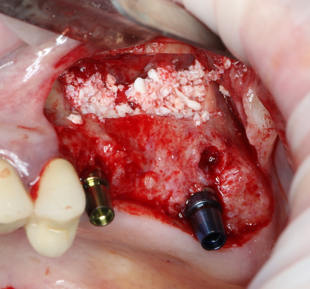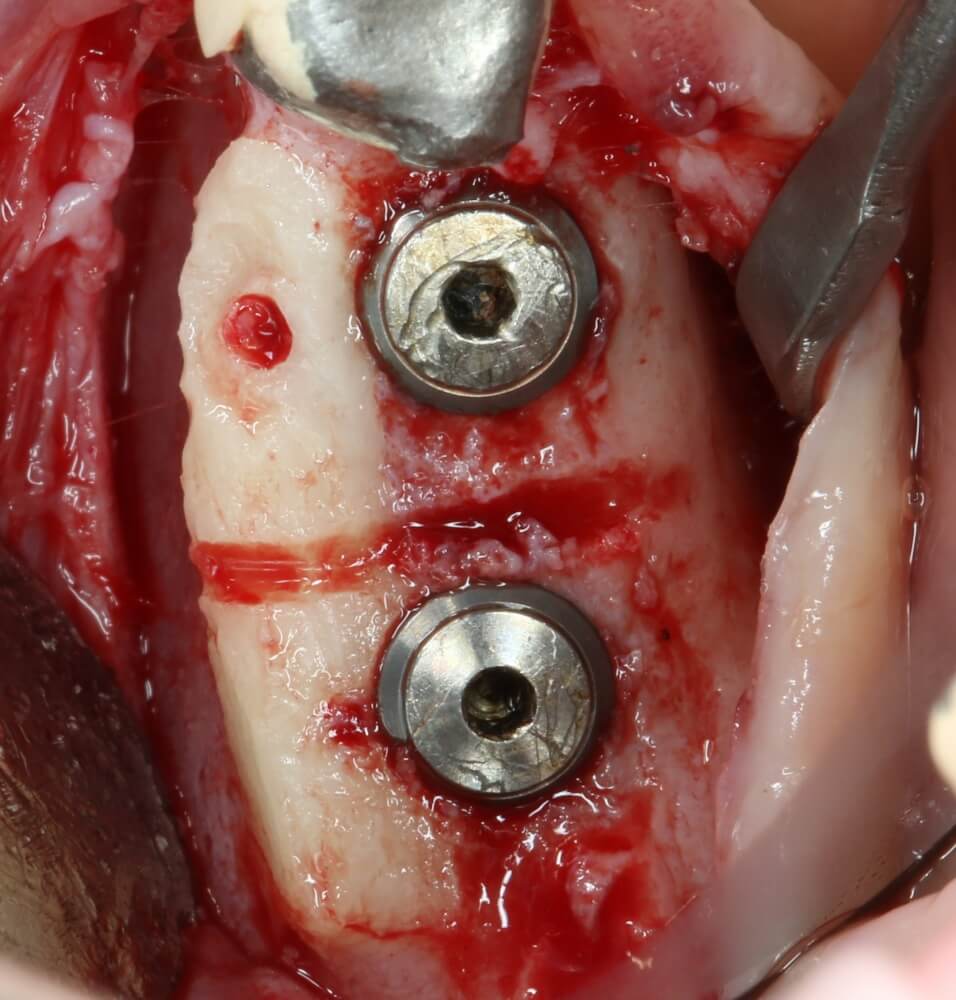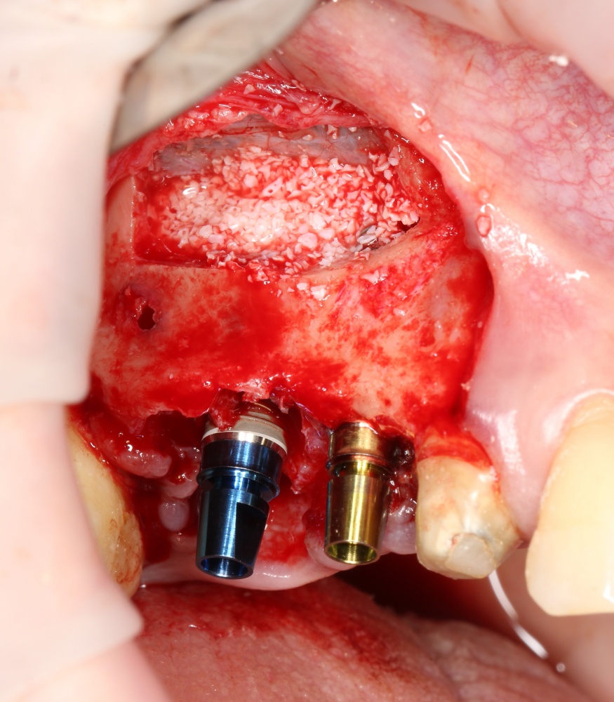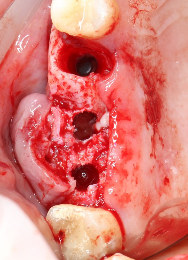 Напомню, что для этой работы я выбрал субкрестальные имплантаты Ankylos C/X. Они прекрасно сочетаются с любым методом остеопластики.