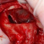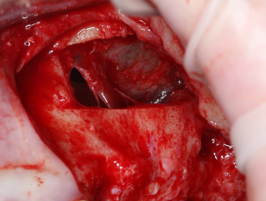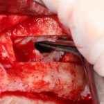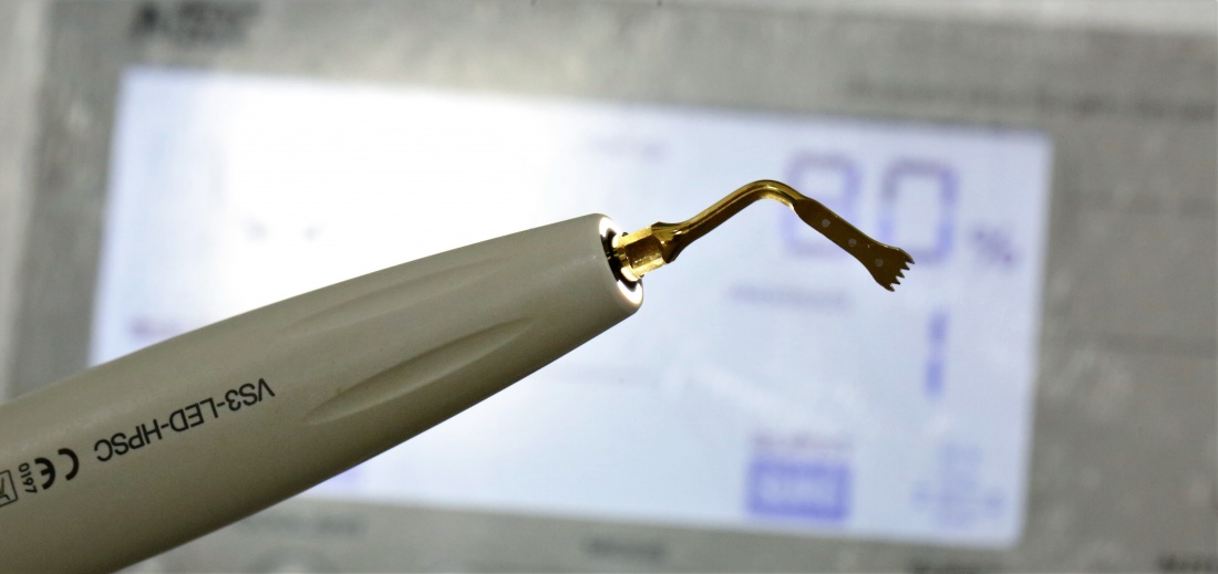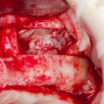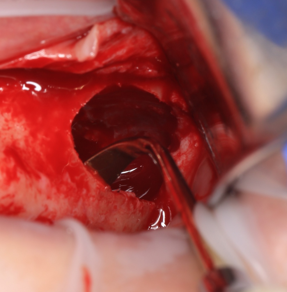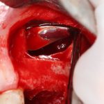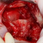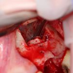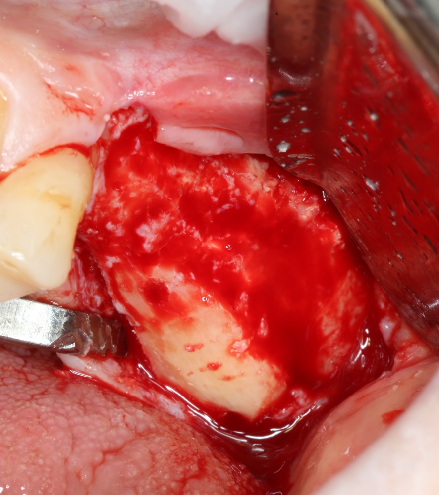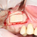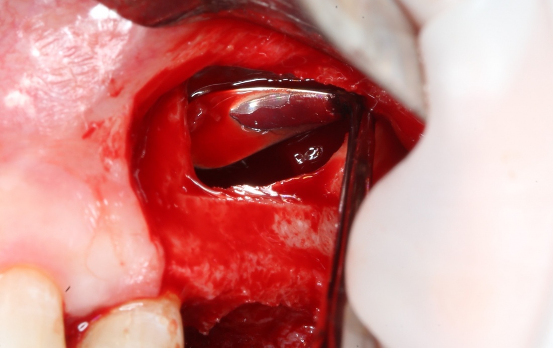 Для получения костного блока мы использовали ультразвуковую пьезохирургическую систему. Это самый удобный и безопасный инструмент для проведения подобных манипуляций. С помощью него мы сформировали и выделили костный блок. Он должен отделяться легким движением остеотома или элеватора. Как это сделать правильно — читай здесь>>