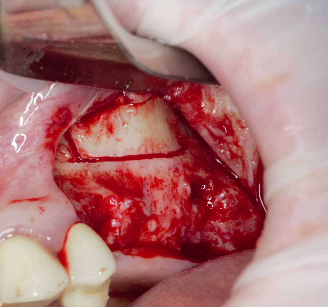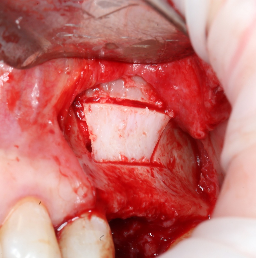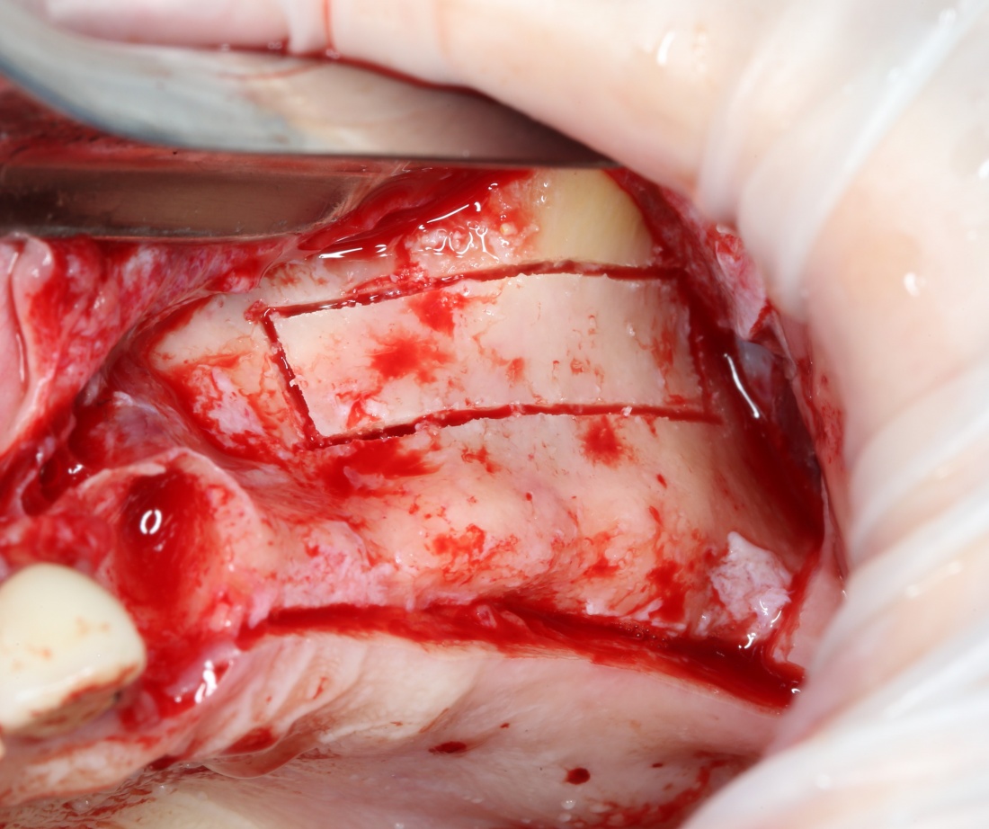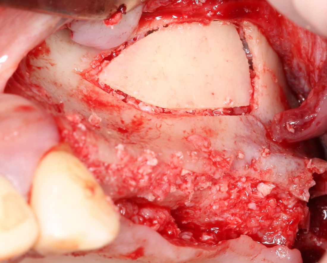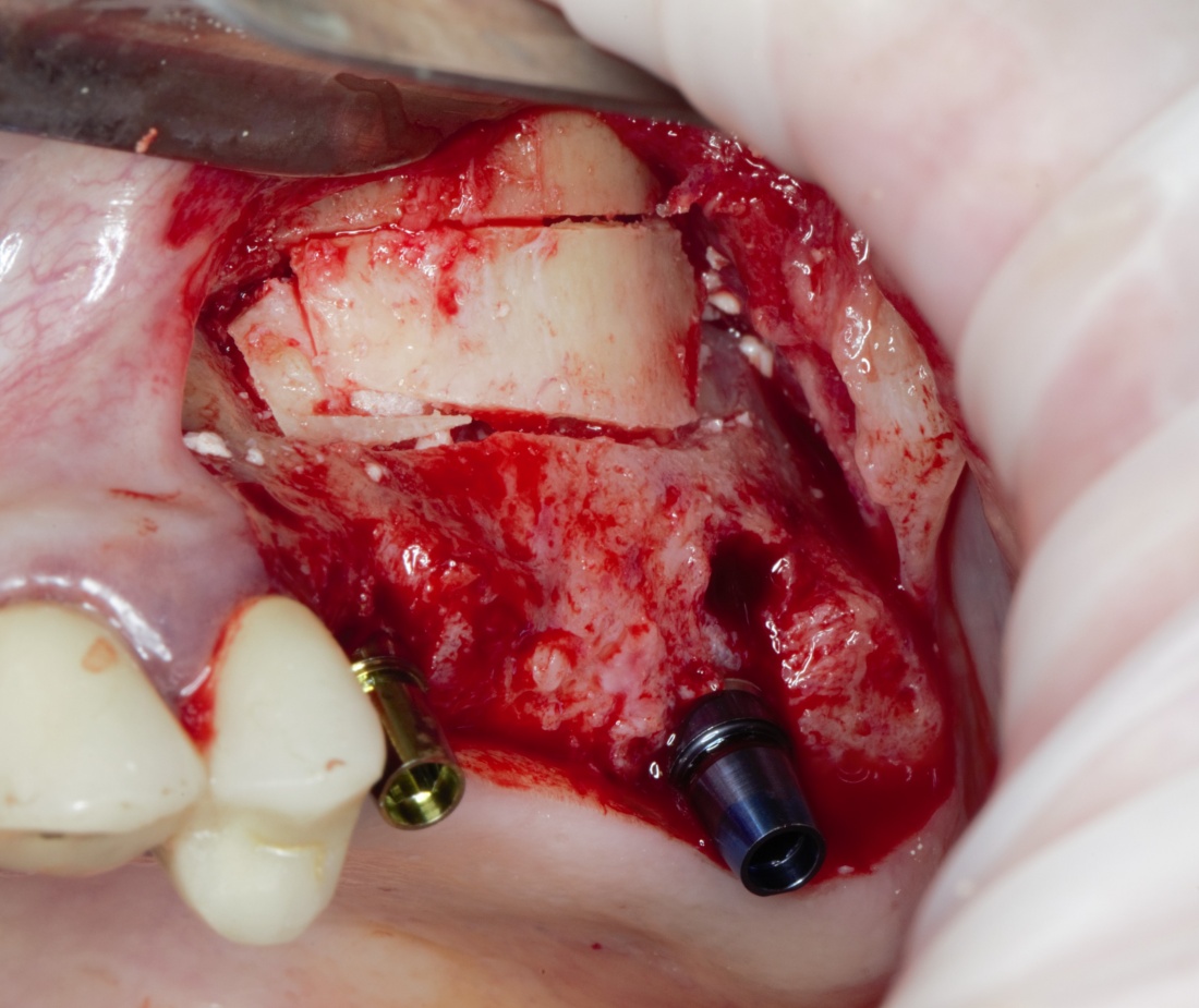 — аутотрансплантация крупных костных фрагментов, т. н. «пересадка костных блоков».