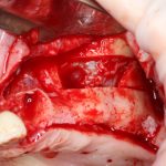 Для получения костного блока, мы открываем донорскую зону, наружную косую линию нижней челюсти.
