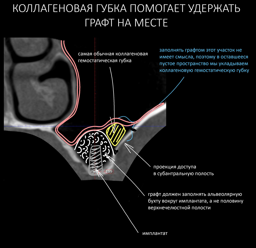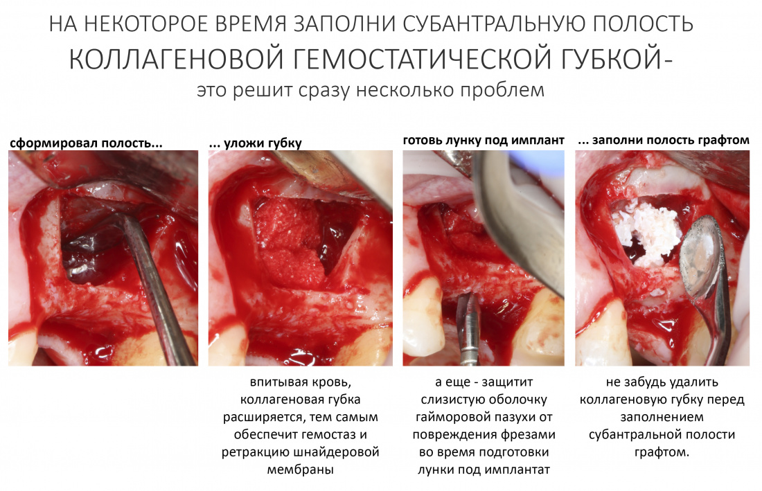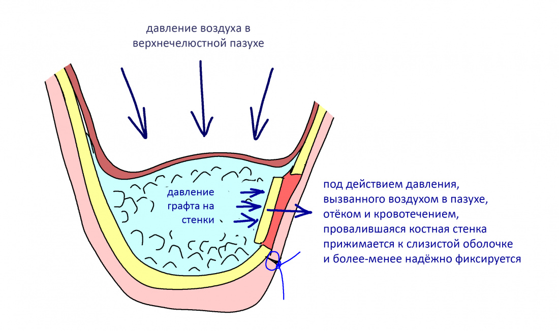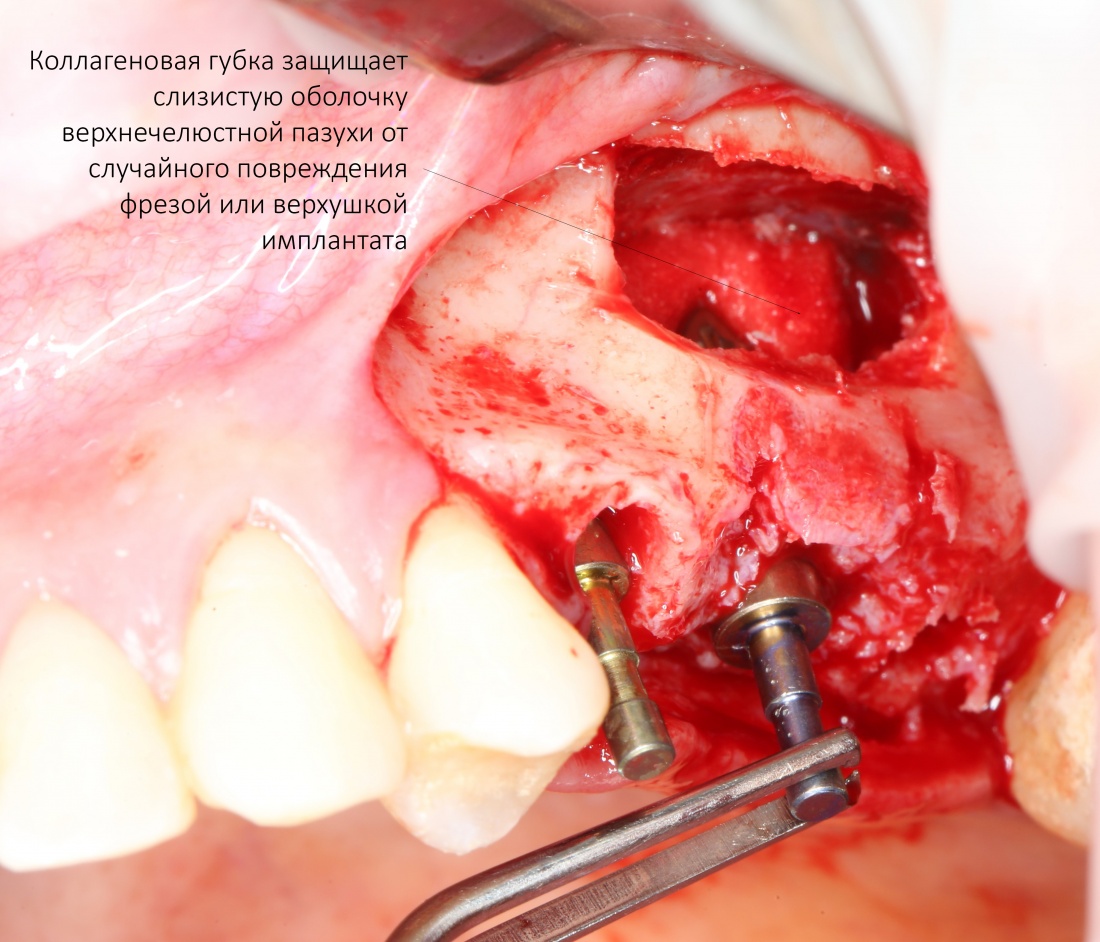 Ремарка: примечательно, что во время синуслифтинга ситуация иная - там требуется удержать барьерную мембрану на слизистой оболочке верхнечелюстной пазухи. Следовательно, рыхлая поверхность - на стороне шнайдеровой мембраны.