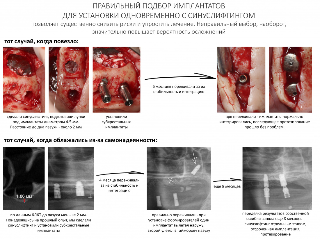 Как видишь, моя компетенция в этих вопросах легко подтверждается историей моих же публикаций. Я провожу такие операции больше пятнадцати лет, столько же наблюдаю результаты и лечу осложнения, если они вдруг случаются. Если ты хочешь стать имплантологом и научиться делать что-то подобное — без проблем. Переходи на эту страницу, внимательно прочитай условия и приезжай на стажировку.
