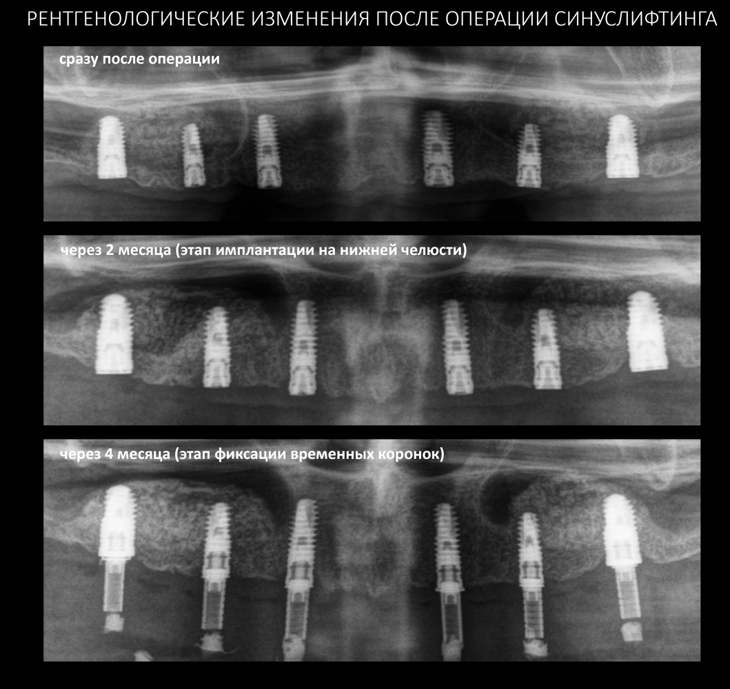 И КЛКТ показала нам, что с имплантатами и окружающей костью всё зашибись. Через 12 лет после операции, отсутствия наблюдения, пофигизма в замене временных коронок! Нужны ли тебе еще какие-нибудь доводы в пользу долгосрочной эффективности метода?