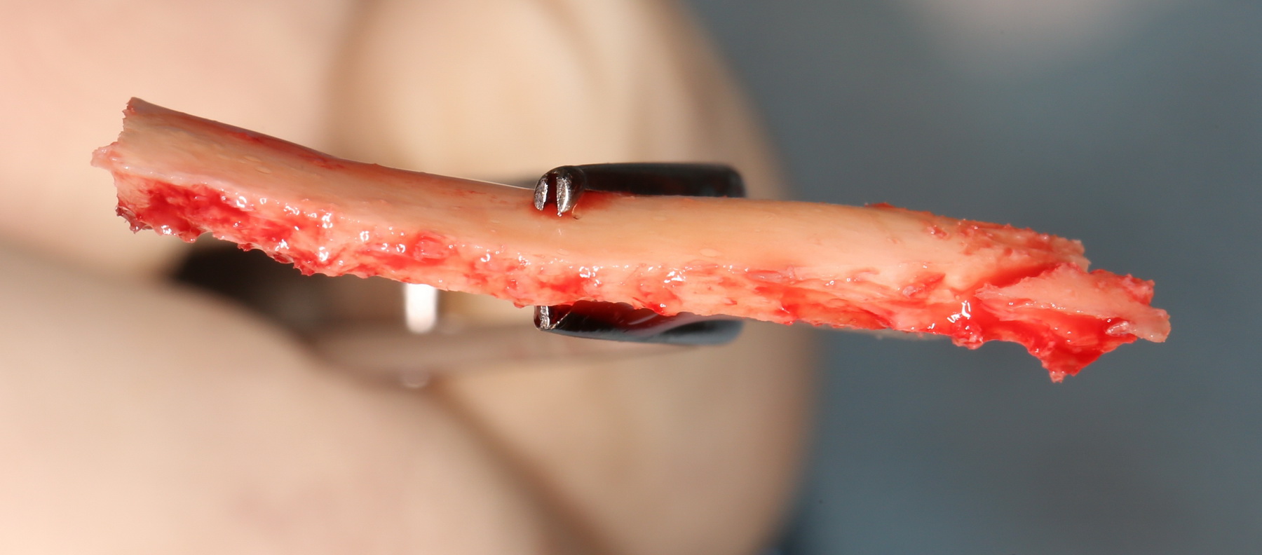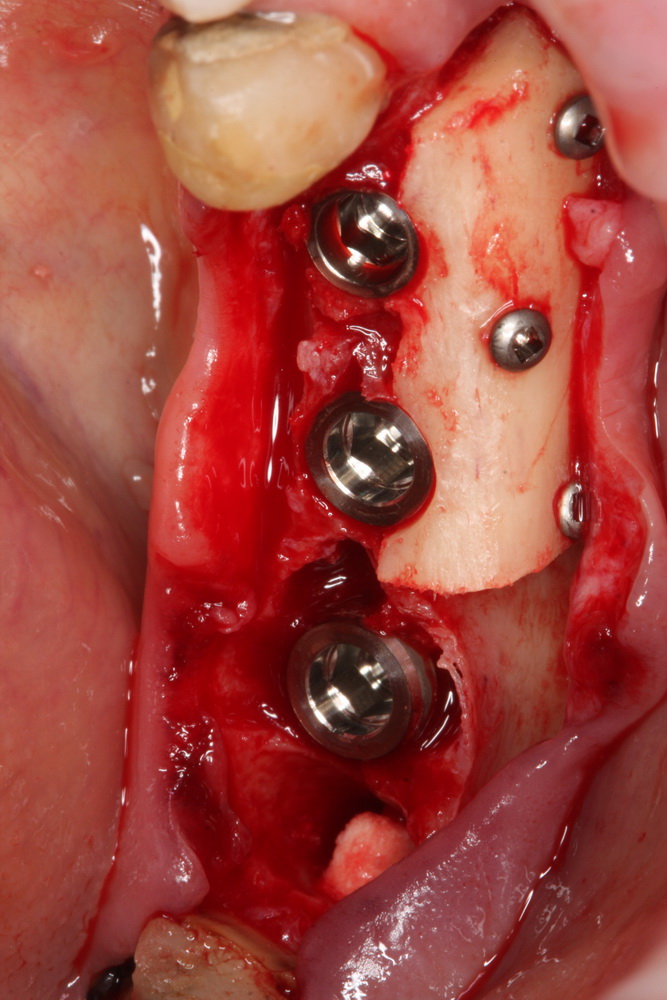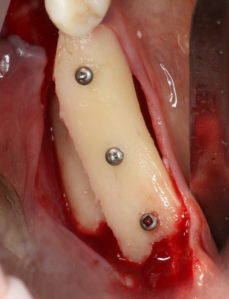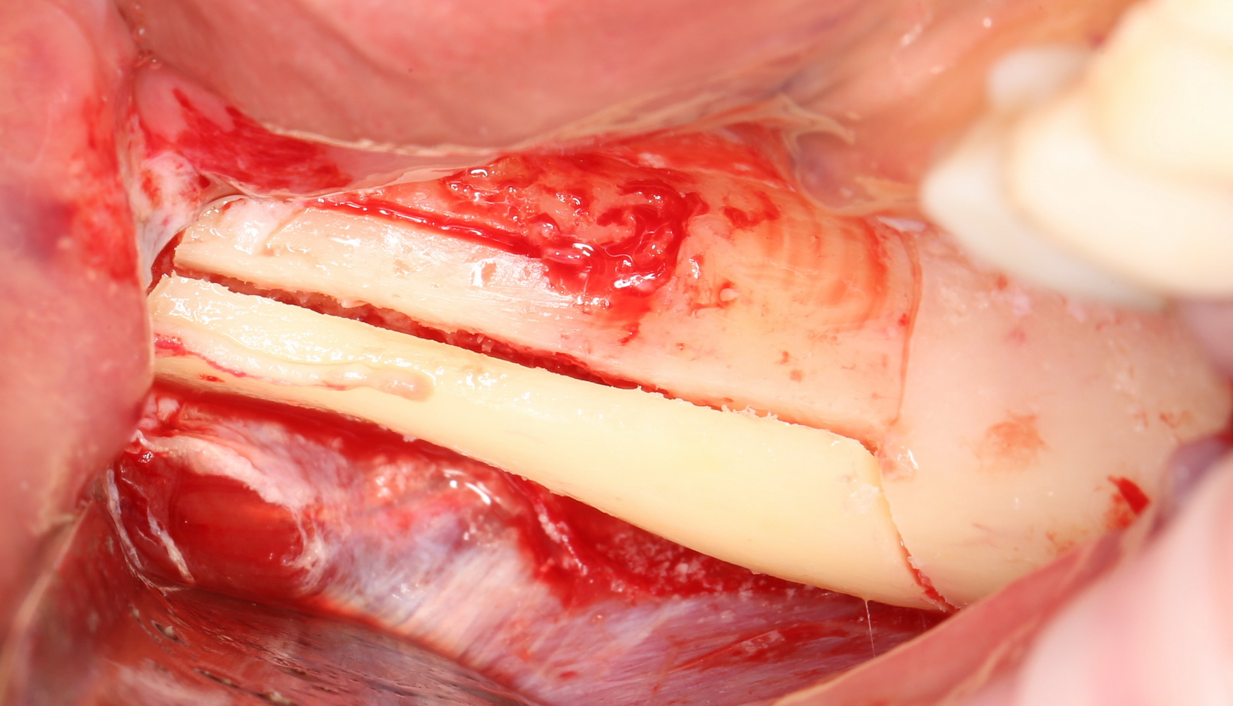 А в качестве трансплантата — аутокостная стружка, которую я насобирал заранее из области угла нижней челюсти: