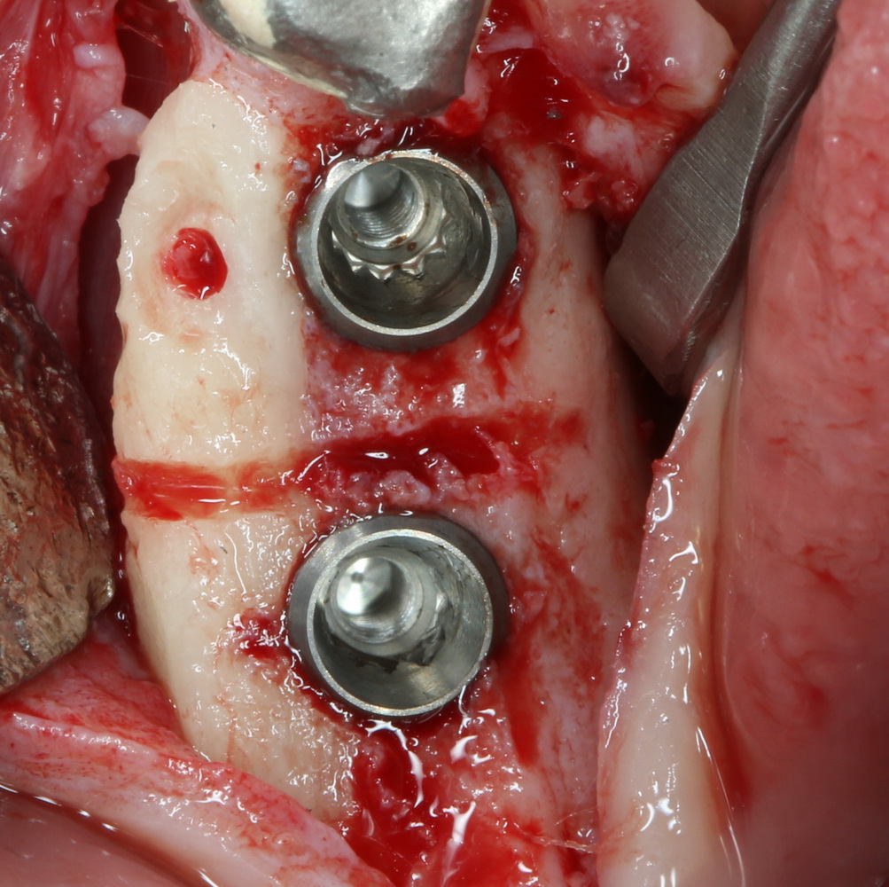 Ну и, оставшиеся объемы костной ткани позволят нам установить и правильно позиционировать имплантат — это главный плюс. А значит, мы обойдемся одной операцией вместо двух.