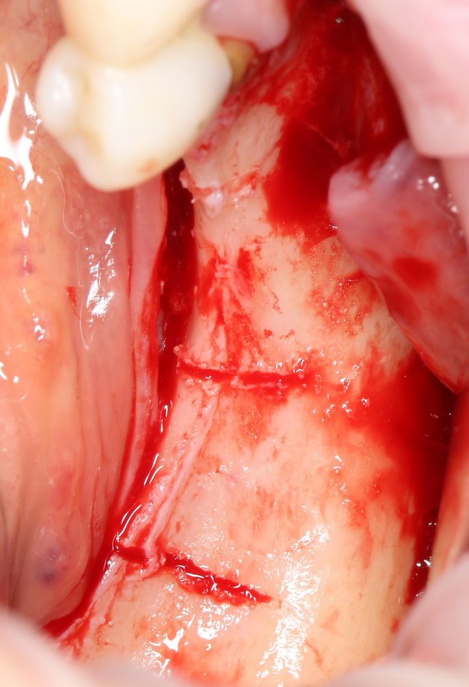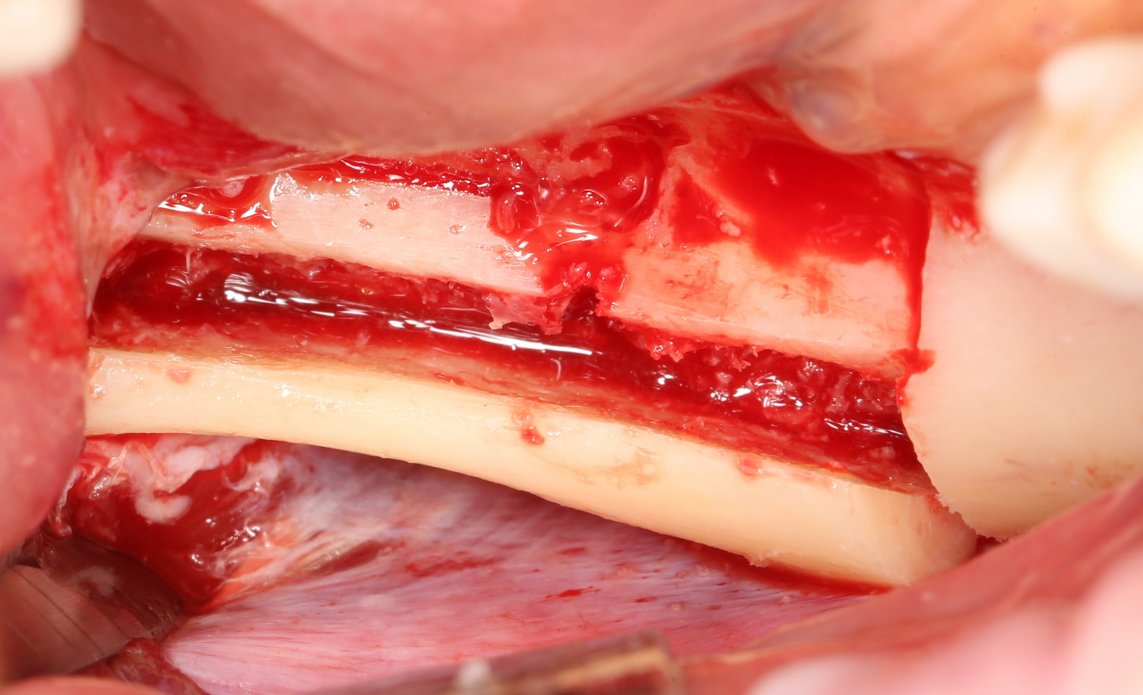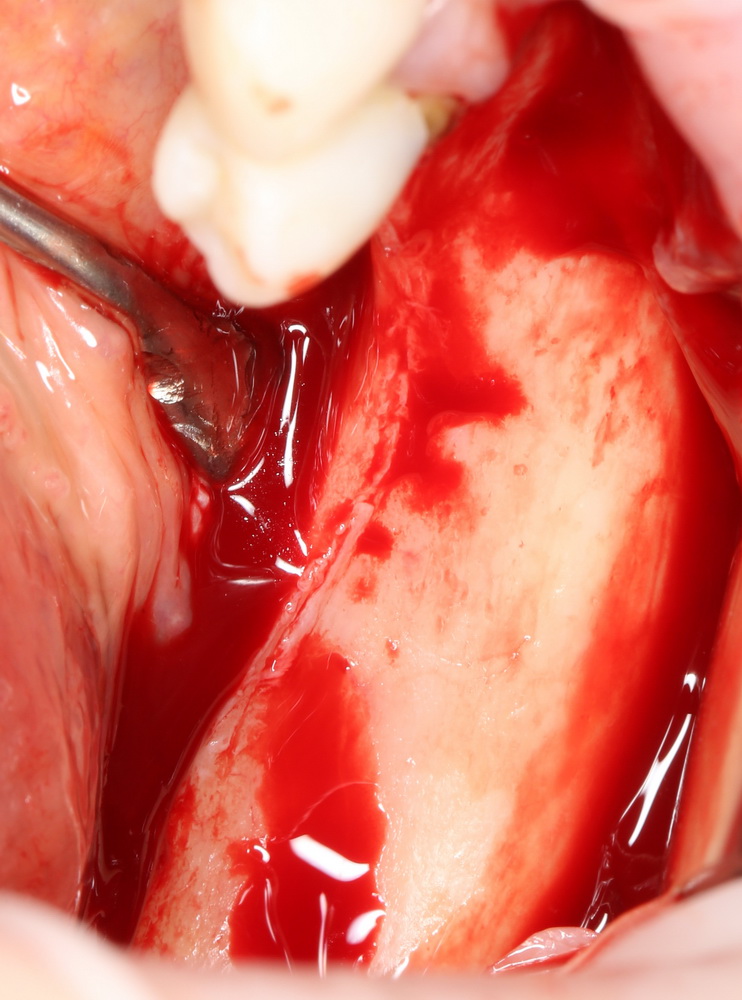 Делаем анестезию, разрез, скелетируем костную ткань: