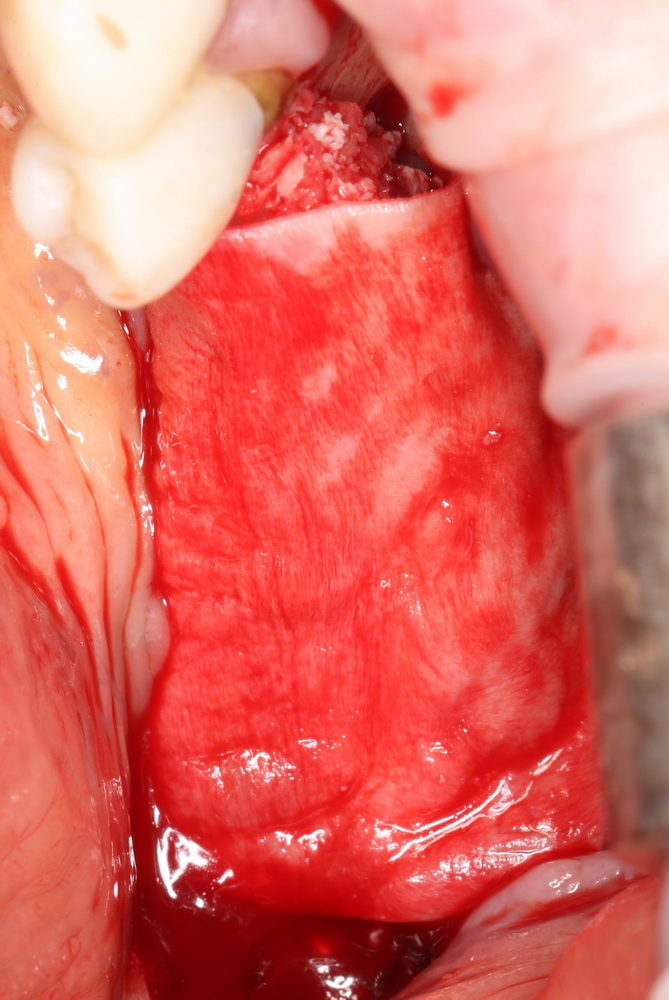 Итого, наиболее оптимальным в данной ситуации оказалась направленная тканевая регенерация с использованием барьерных мембран. В качестве барьерной мембраны у нас будет Geistlich BioGide. Ее очень легко адаптировать и позиционировать: