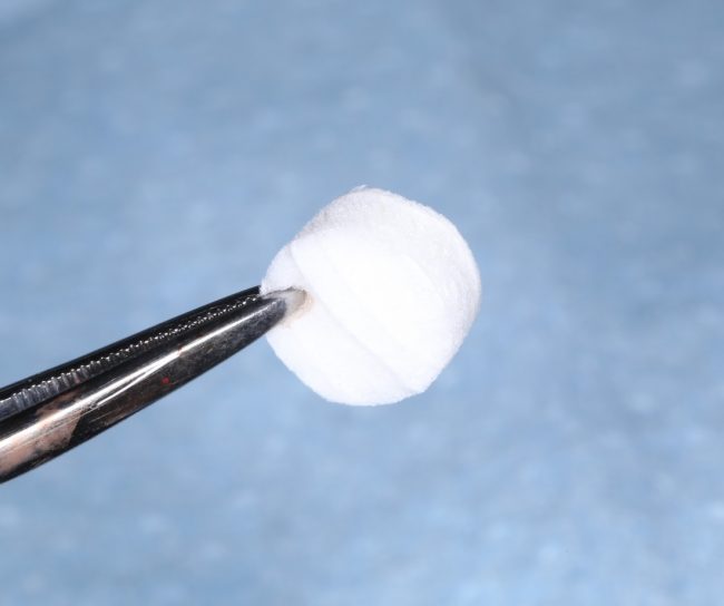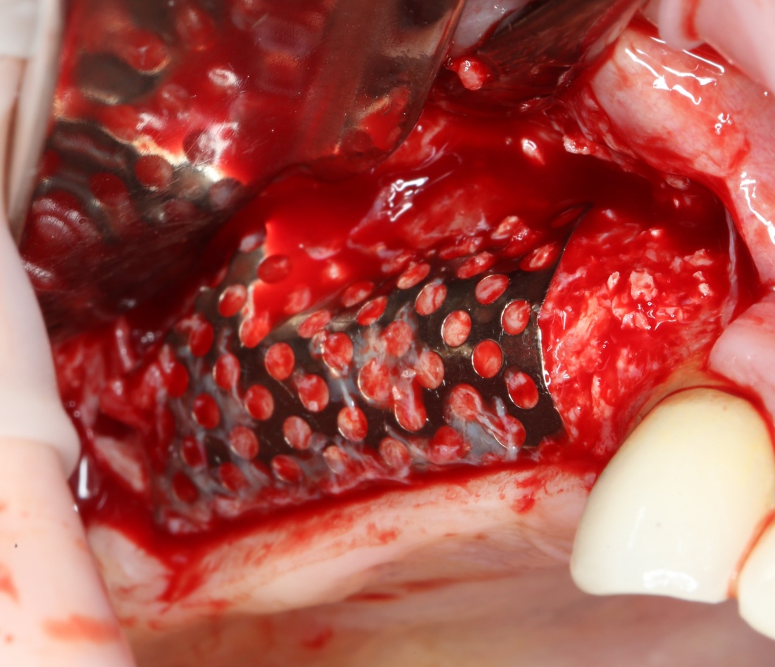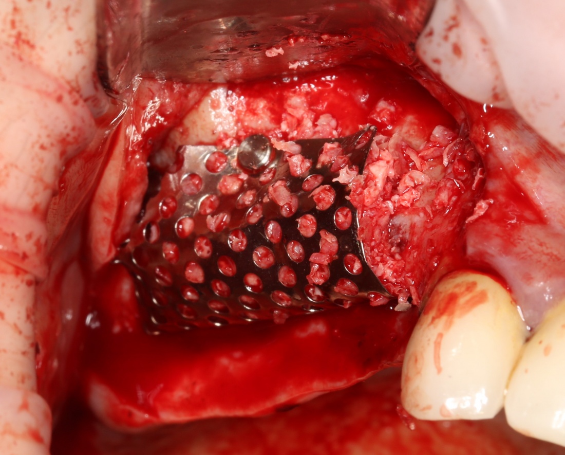 Например, на фотографиях выше, мы использовали Bio-Oss S 0.5g (слева), и Bio-Oss L 0.5g (справа). При одинаковой массе, крупными гранулами (справа) нам удалось заполнить больший объём. Кроме того, там осталось больше пространства для миграции клеток и роста костной ткани.