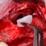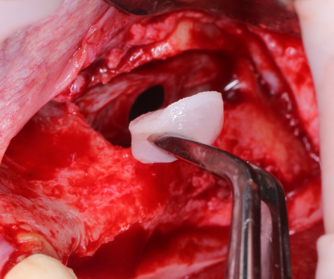 - после создания доступа получается костный фрагмент, который мы можем использовать по-разному (для закрытия перфорации, костной пластики,